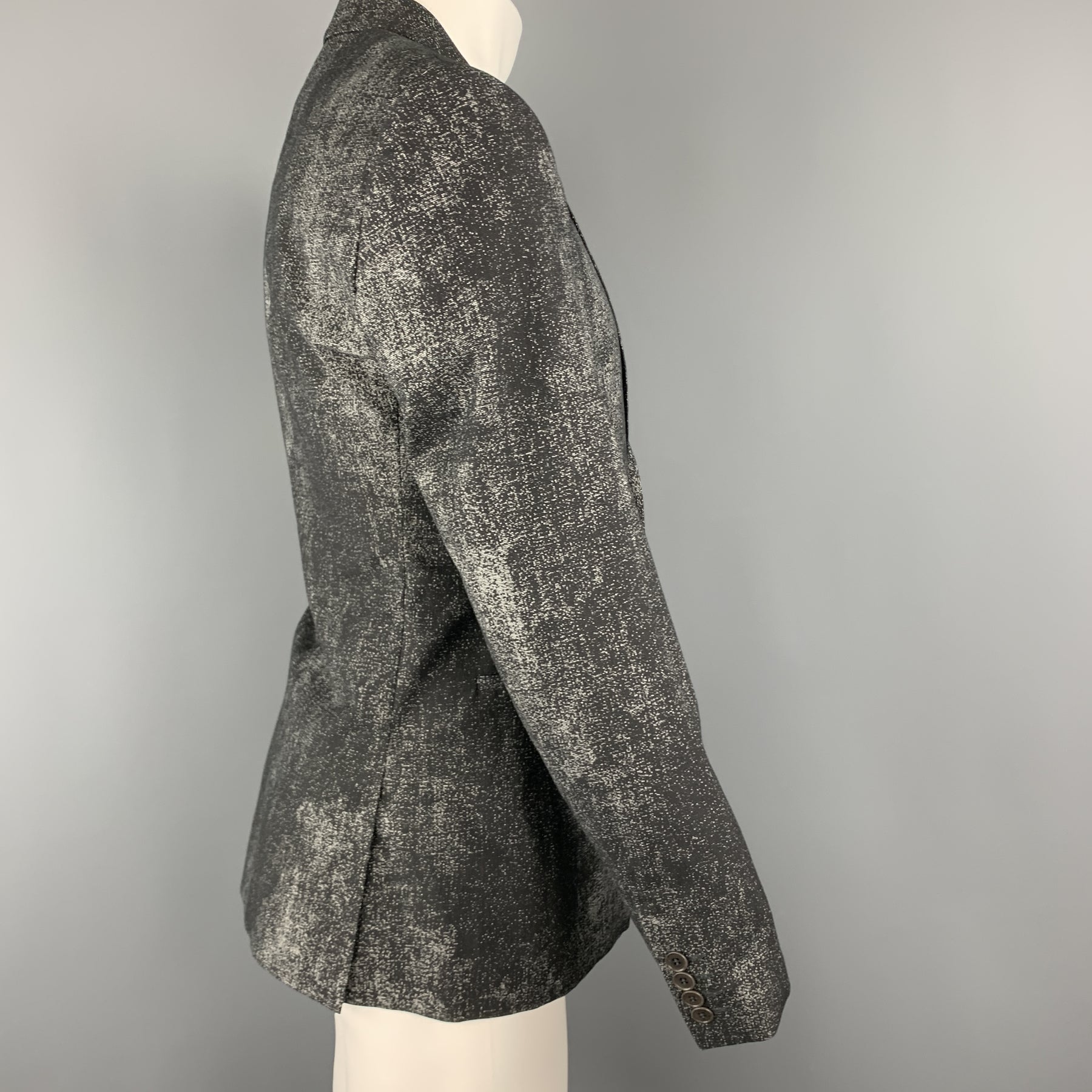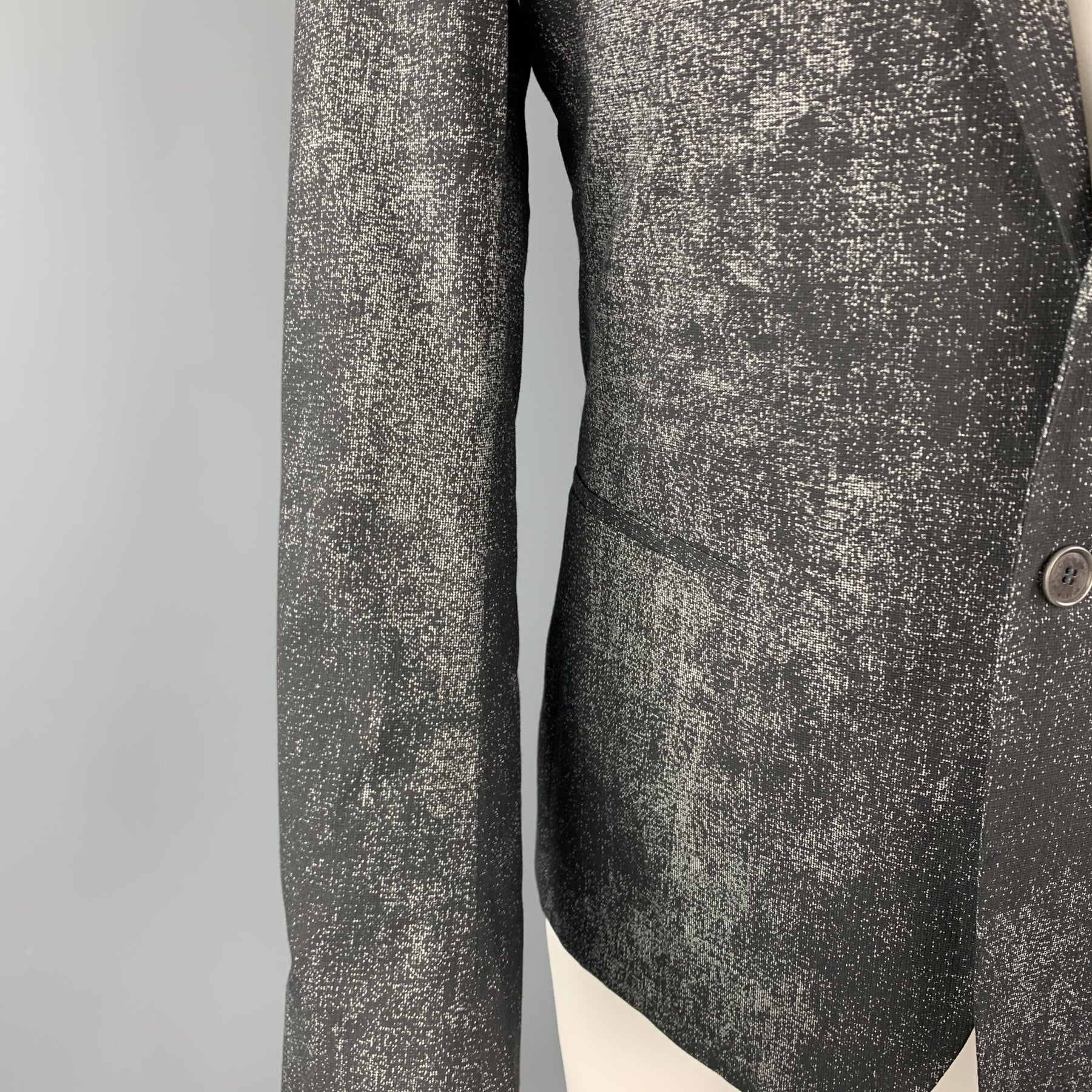 CALVIN KLEIN COLLECTION Size 36 Black & Grey Distressed Print Sport Coat