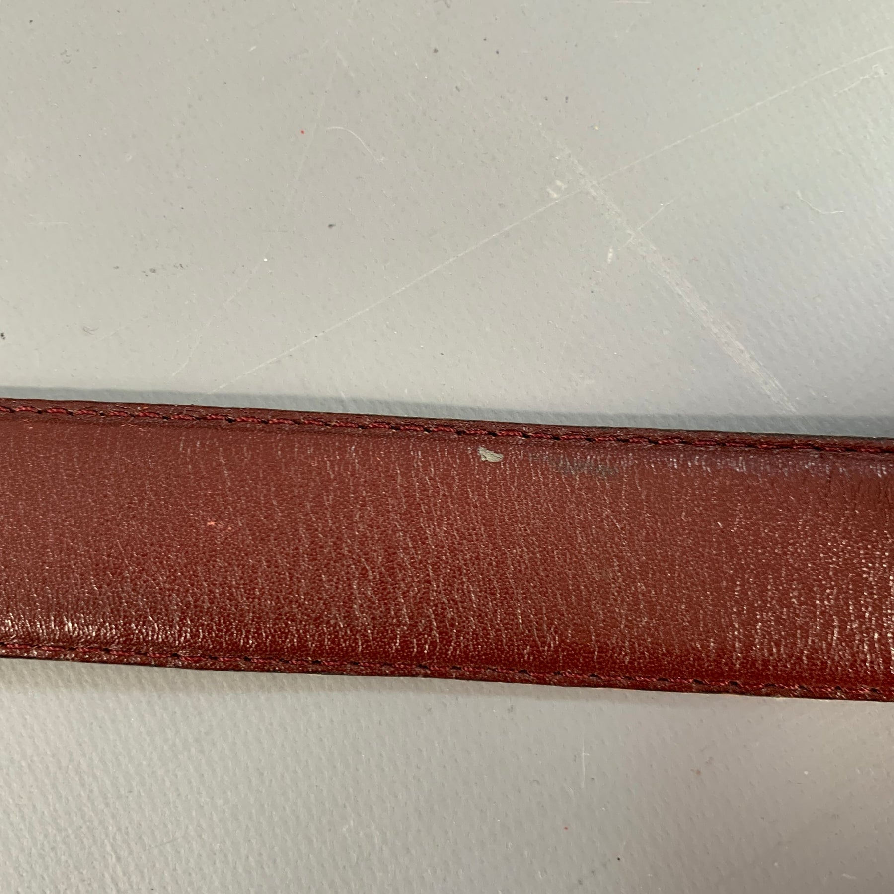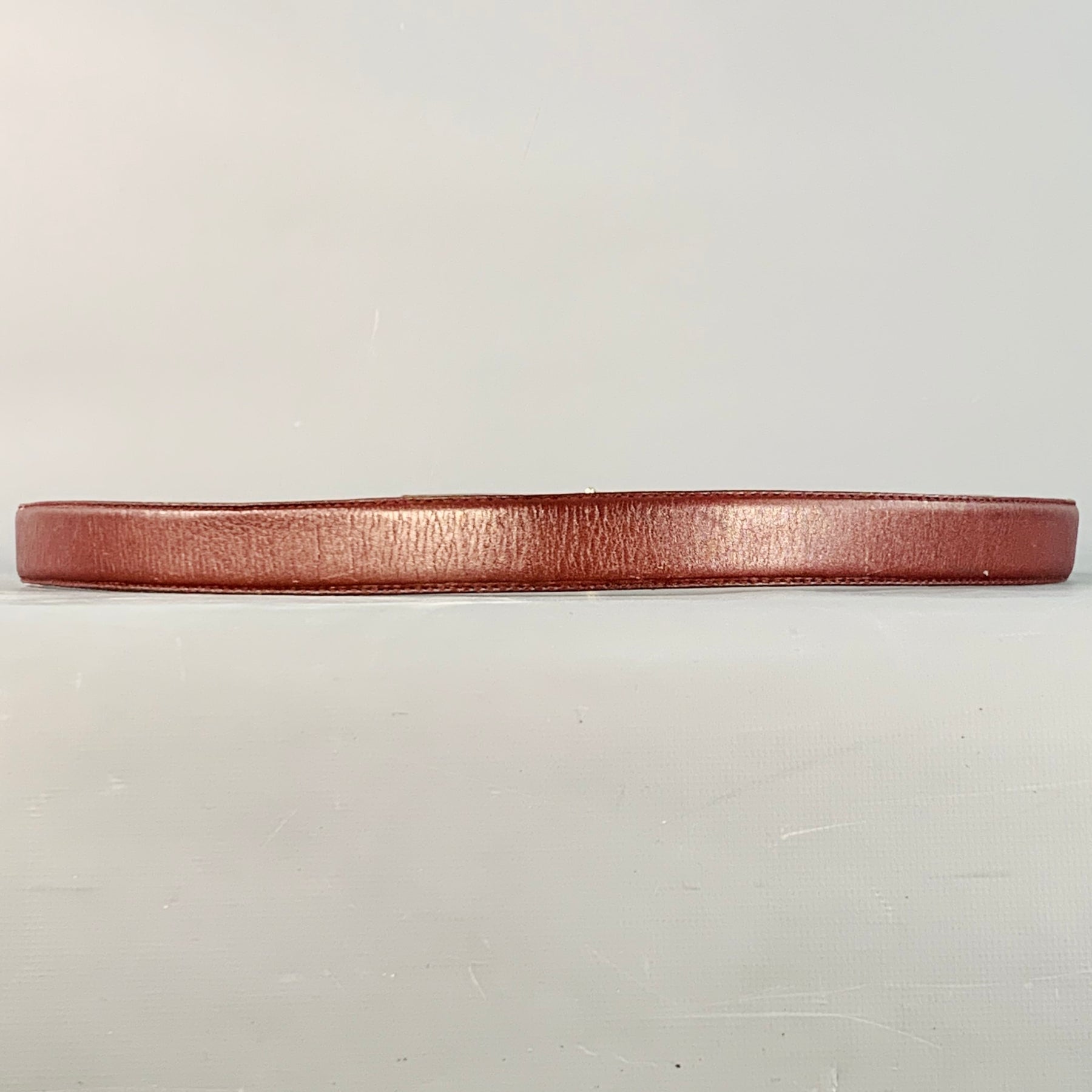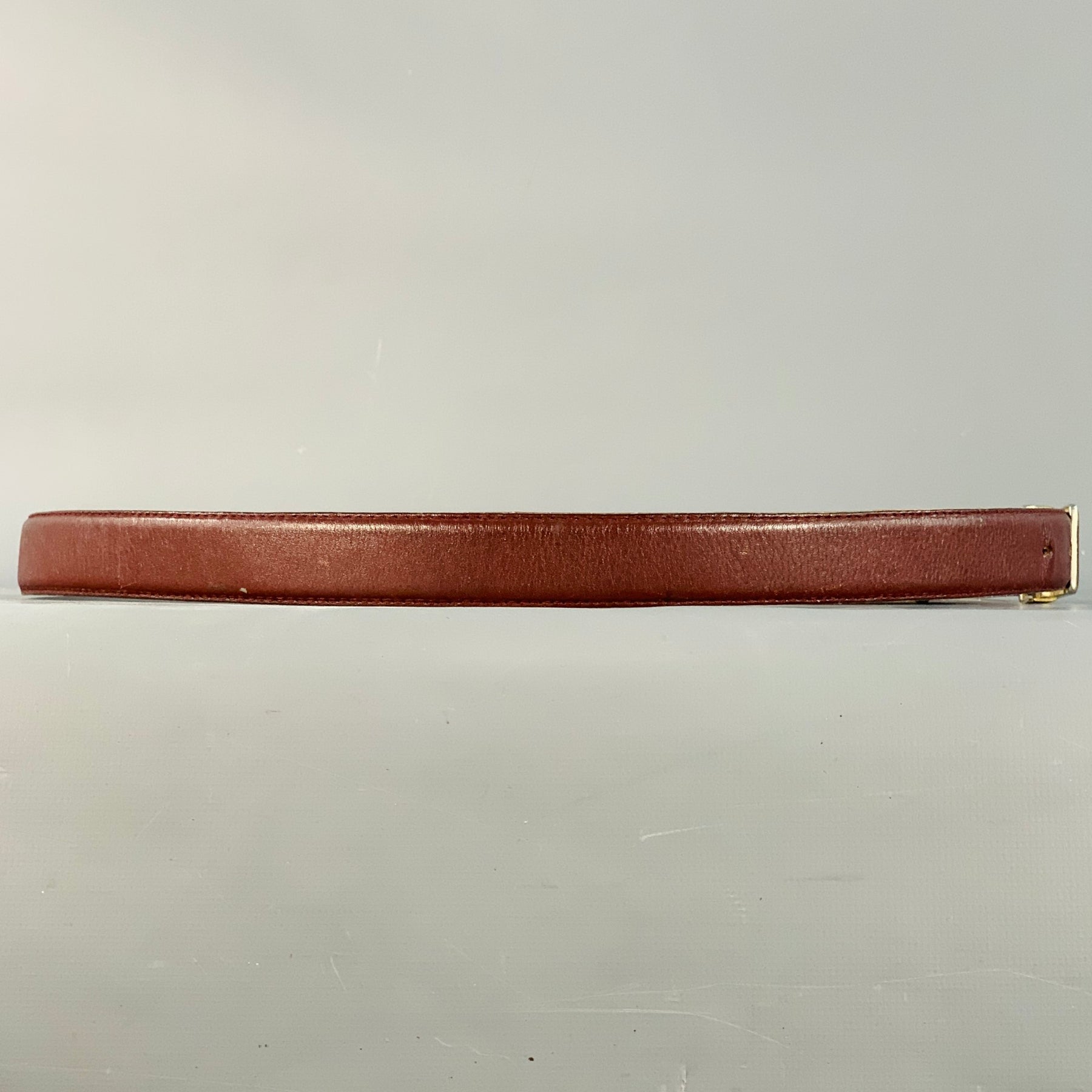 CARTIER Vintage Size 43 Burgundy Gold Logo Leather Skinny Belt