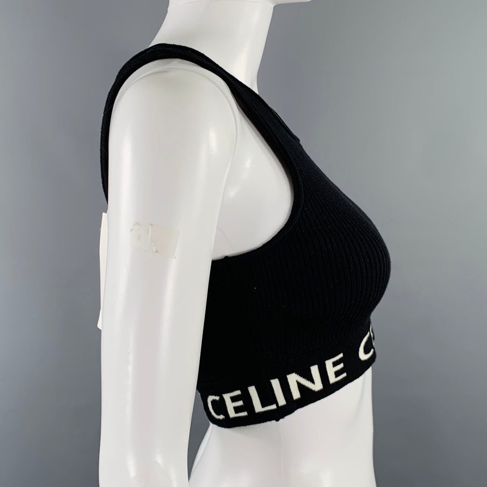 CELINE Size S Black White Cotton Logo Athletic Casual Crop Top