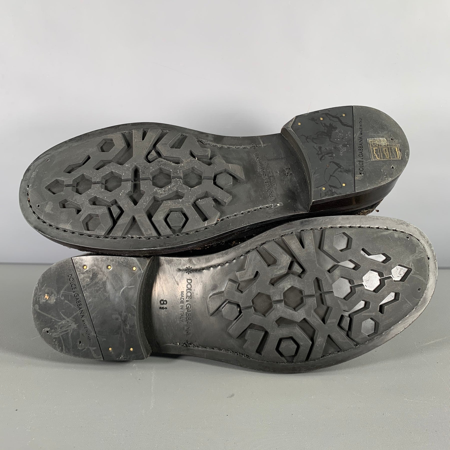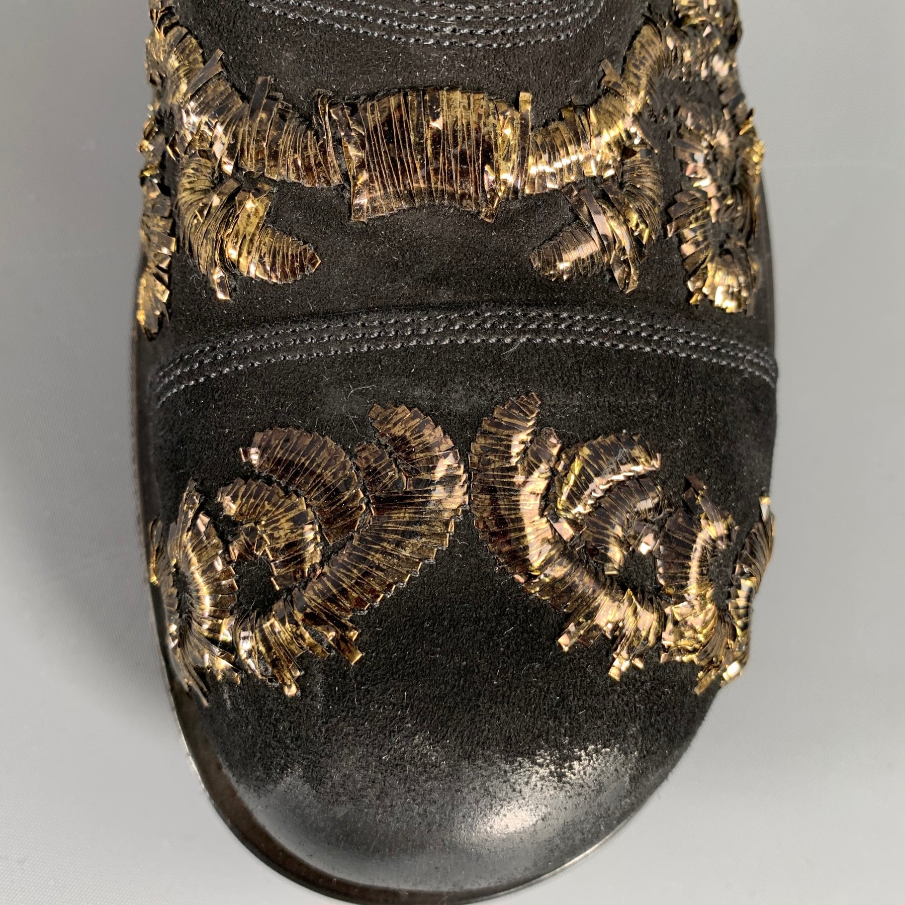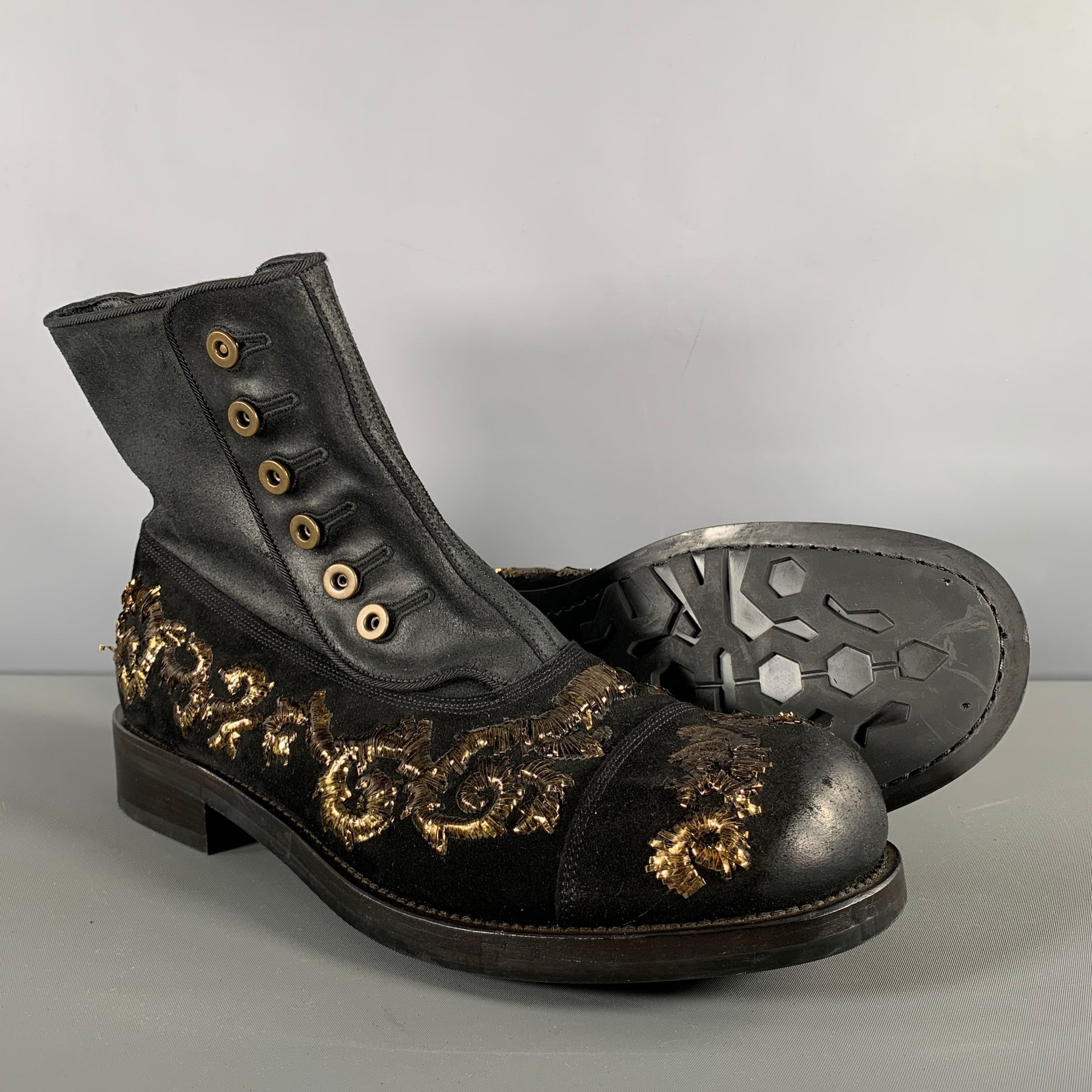 DOLCE & GABBANA Size 8.5 Black Gold Embroidery Leather Side Buttons Boots
