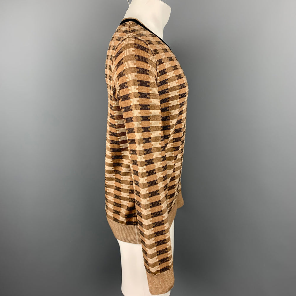 DRIES VAN NOTEN Size L Brown Knitted Cotton / Wool Crew-Neck Sweater