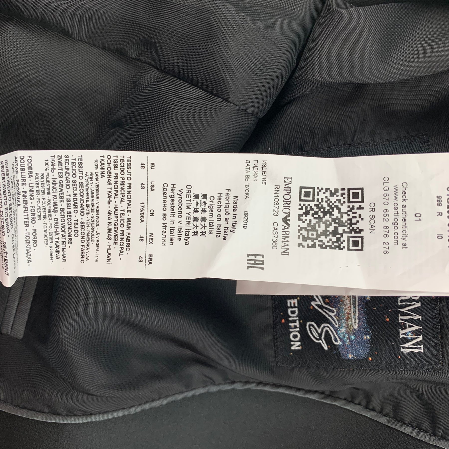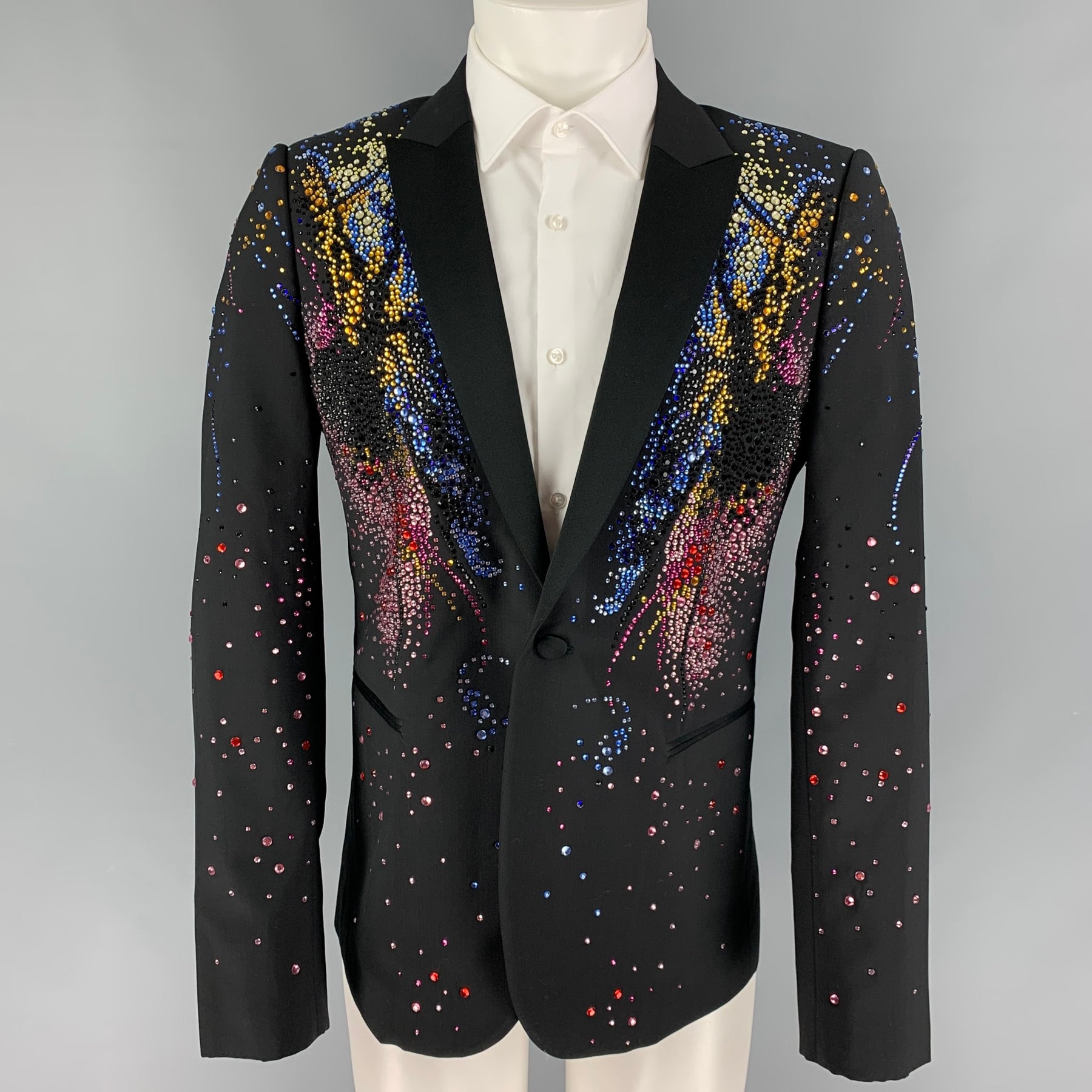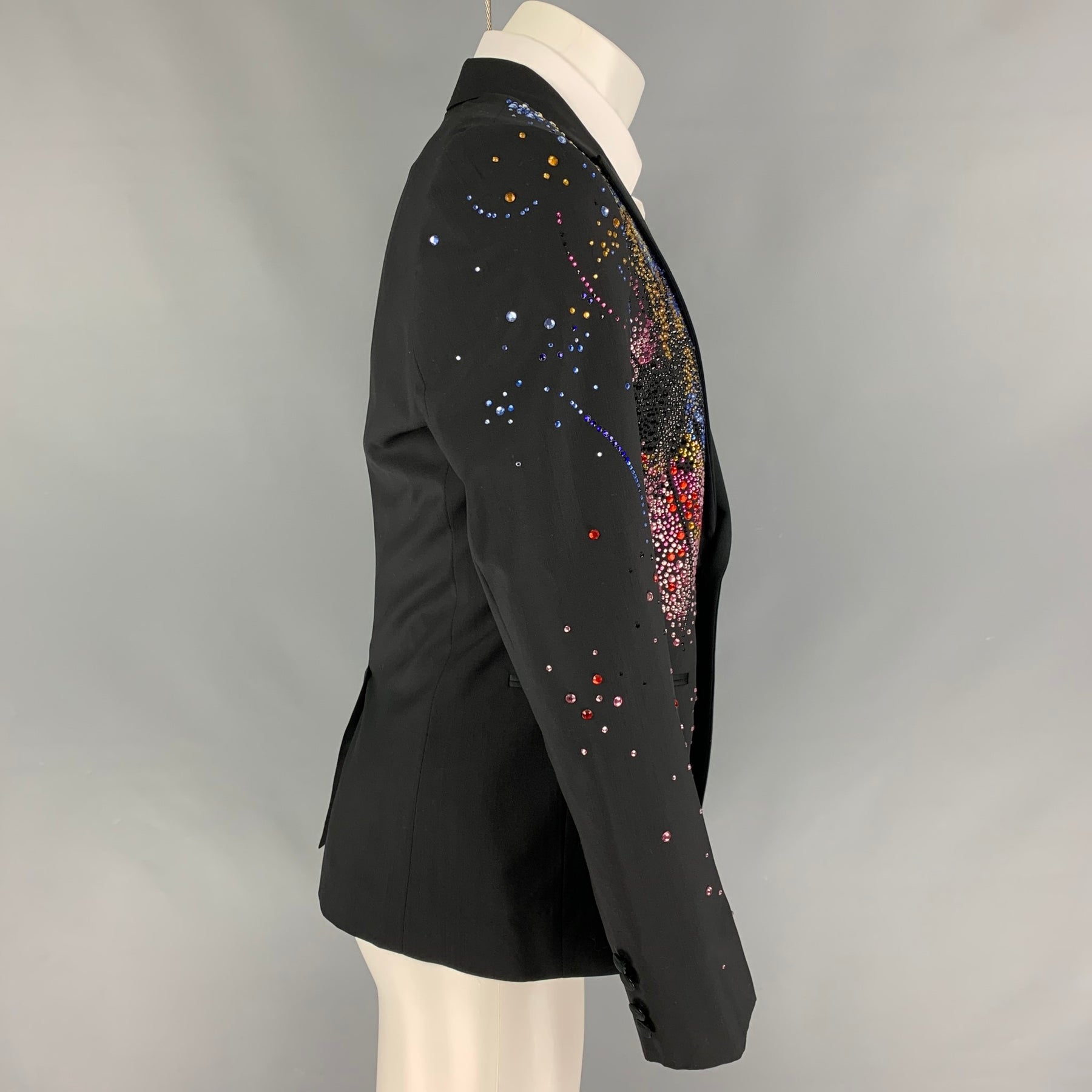EMPORIO ARMANI SS 20 STARS Limited Edition Size 38 Black Beaded Wool Peak Lapel Sport Coat