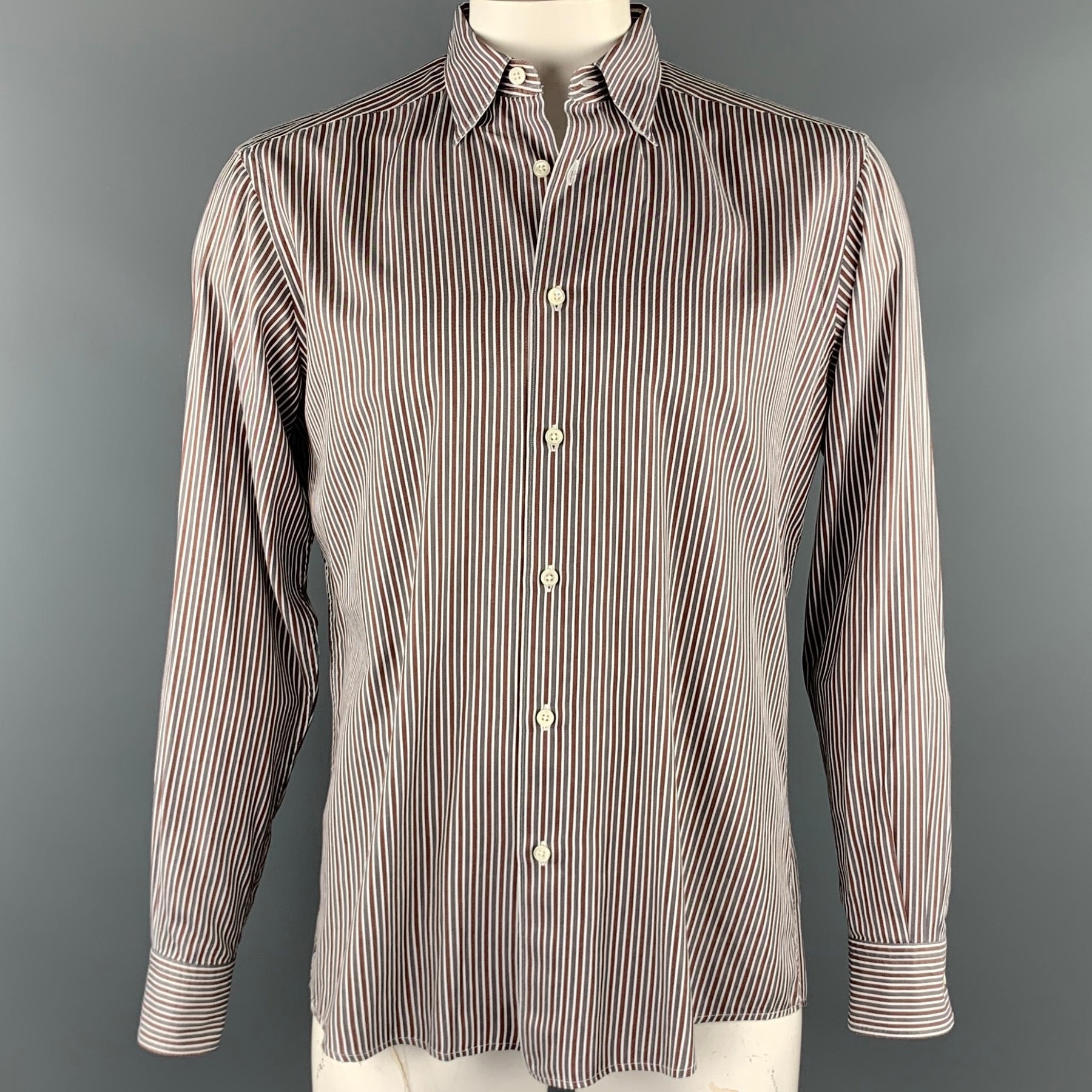 ERMENEGILDO ZEGNA Size L Grey & Brown Stripe Cotton Button Up Long Sleeve Shirt