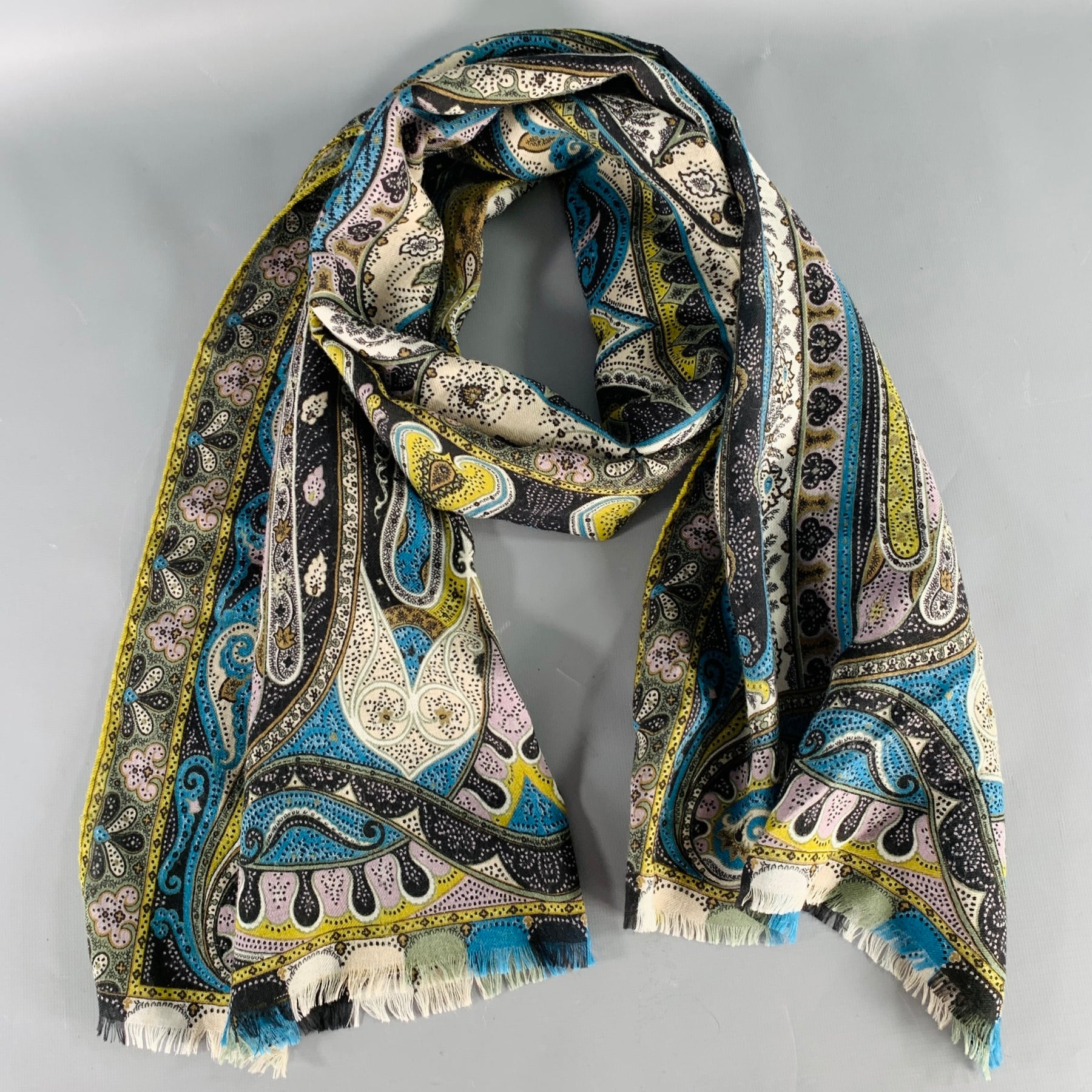 ETRO Multi Color Paisley Silk Wool Fringe Scarf