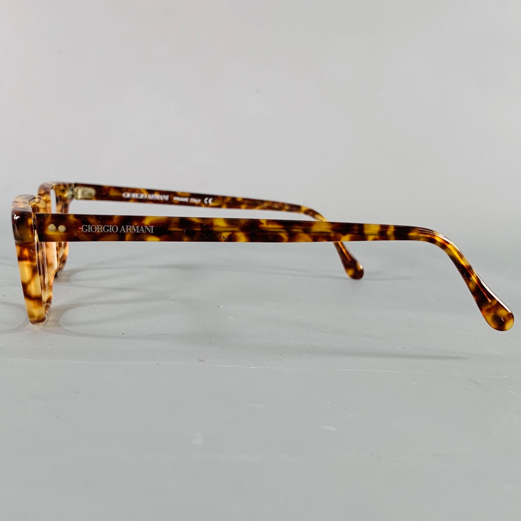 GIORGIO ARMANI frames in a brown acetate featuring a tortoiseshell pattern. Note: these frames do not contain lenses, and will need to be replaced by an optician. Comes with case. Made in Italy.