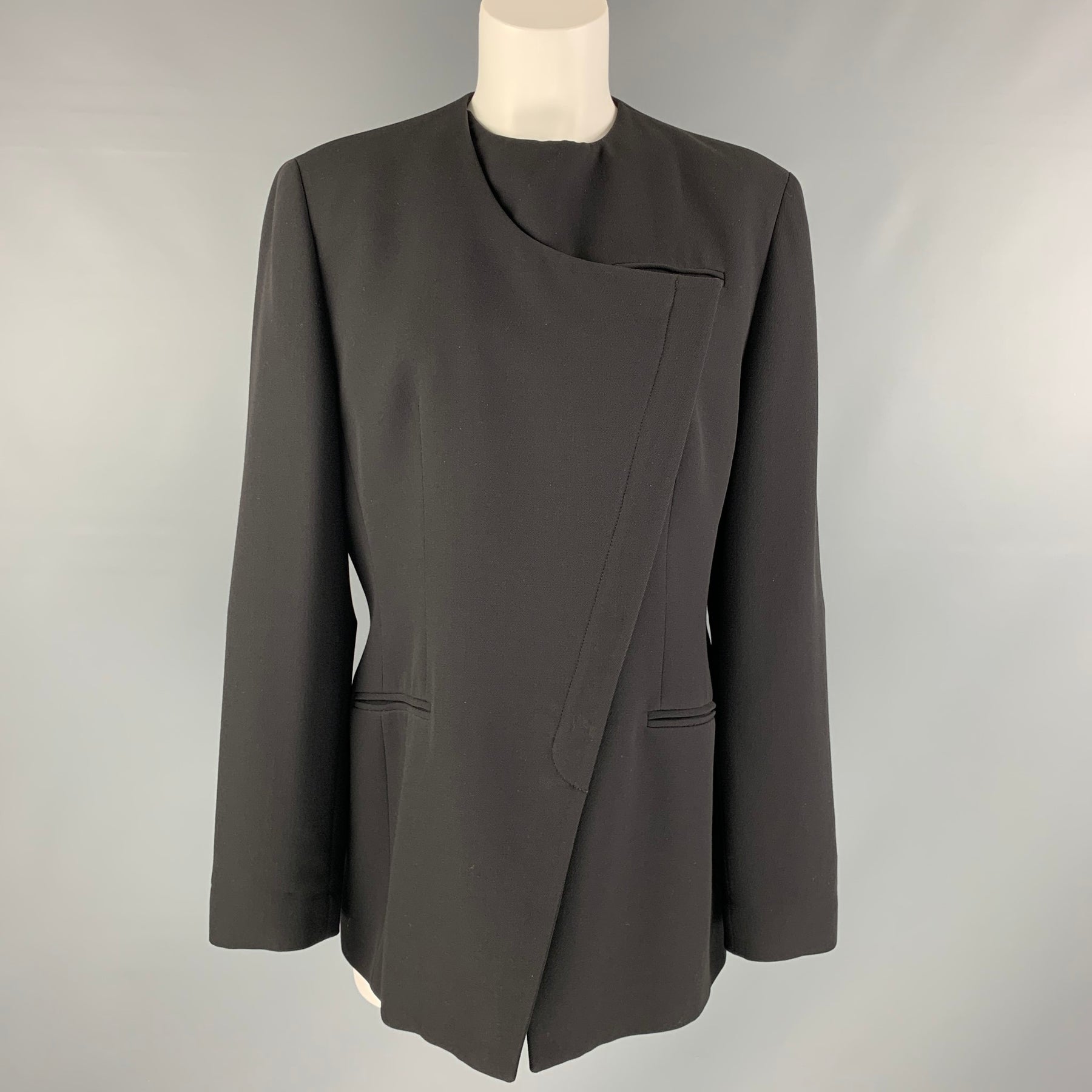 GIORGIO ARMANI Size 10 Black Wool Solid Asymmetrical Jacket Blazer