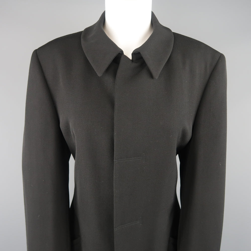 GIORGIO ARMANI Size 12 Black Wool Collared Hidden Placket Snap Car Coat