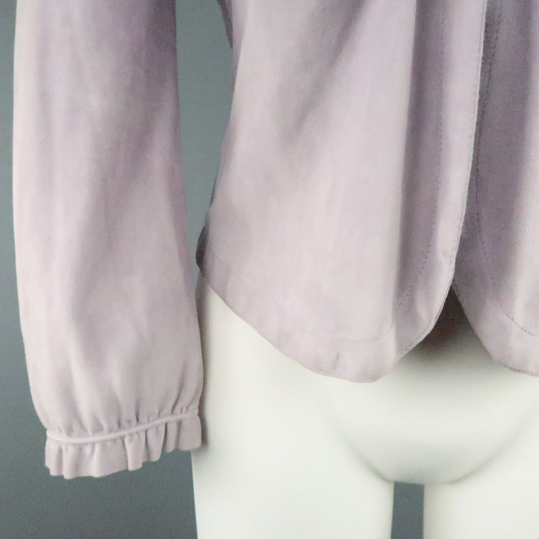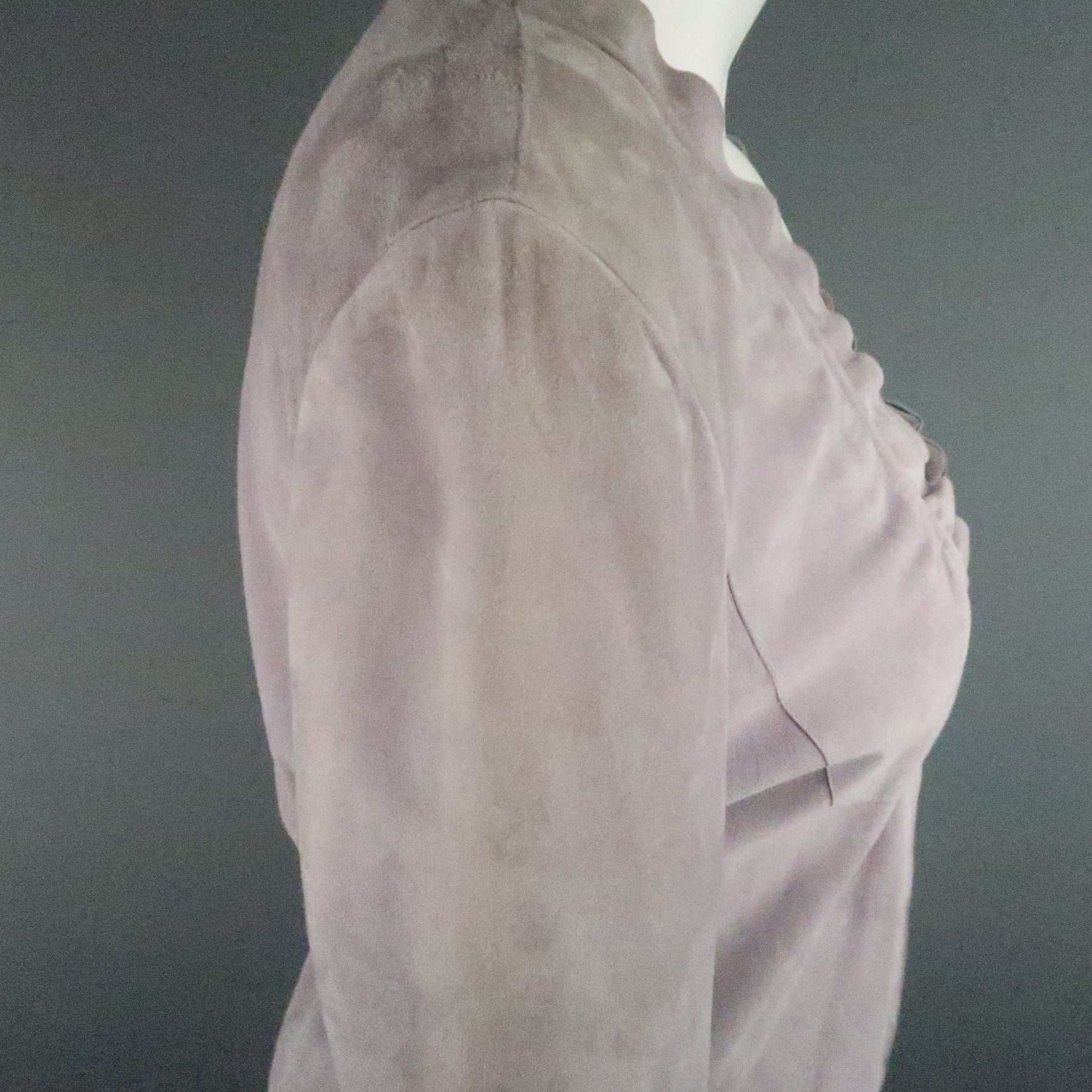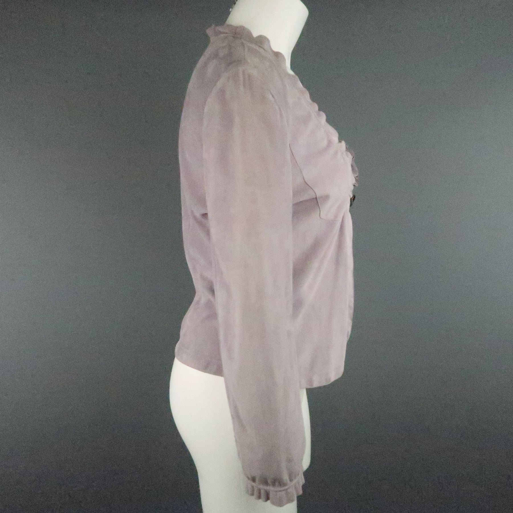 GIORGIO ARMANI Size 12 Lavender Suede Ruffle Trim Cardigan Jacket