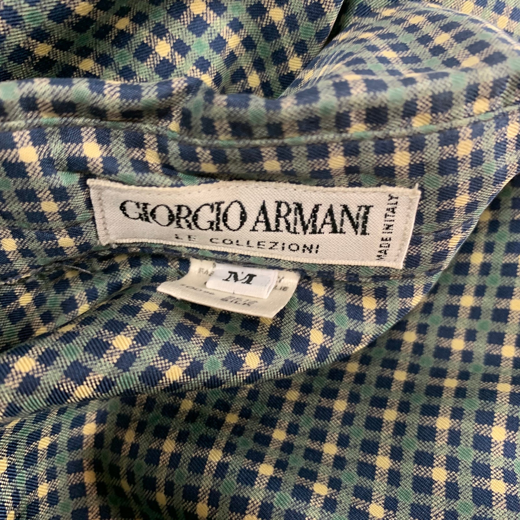 GIORGIO ARMANI Size M Green & Beige Plaid Silk Button Up Long Sleeve Shirt