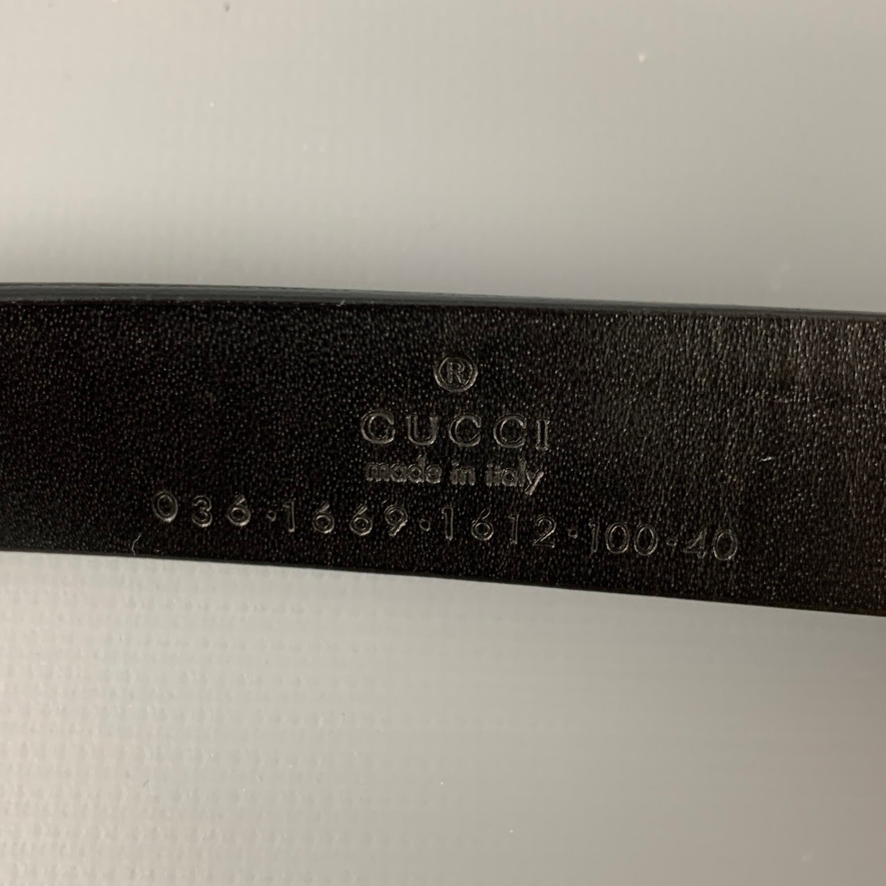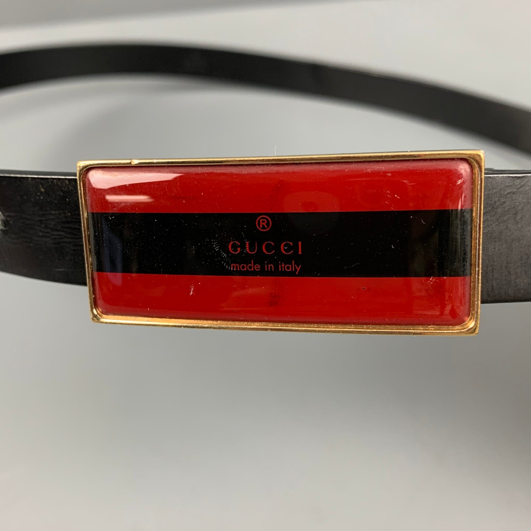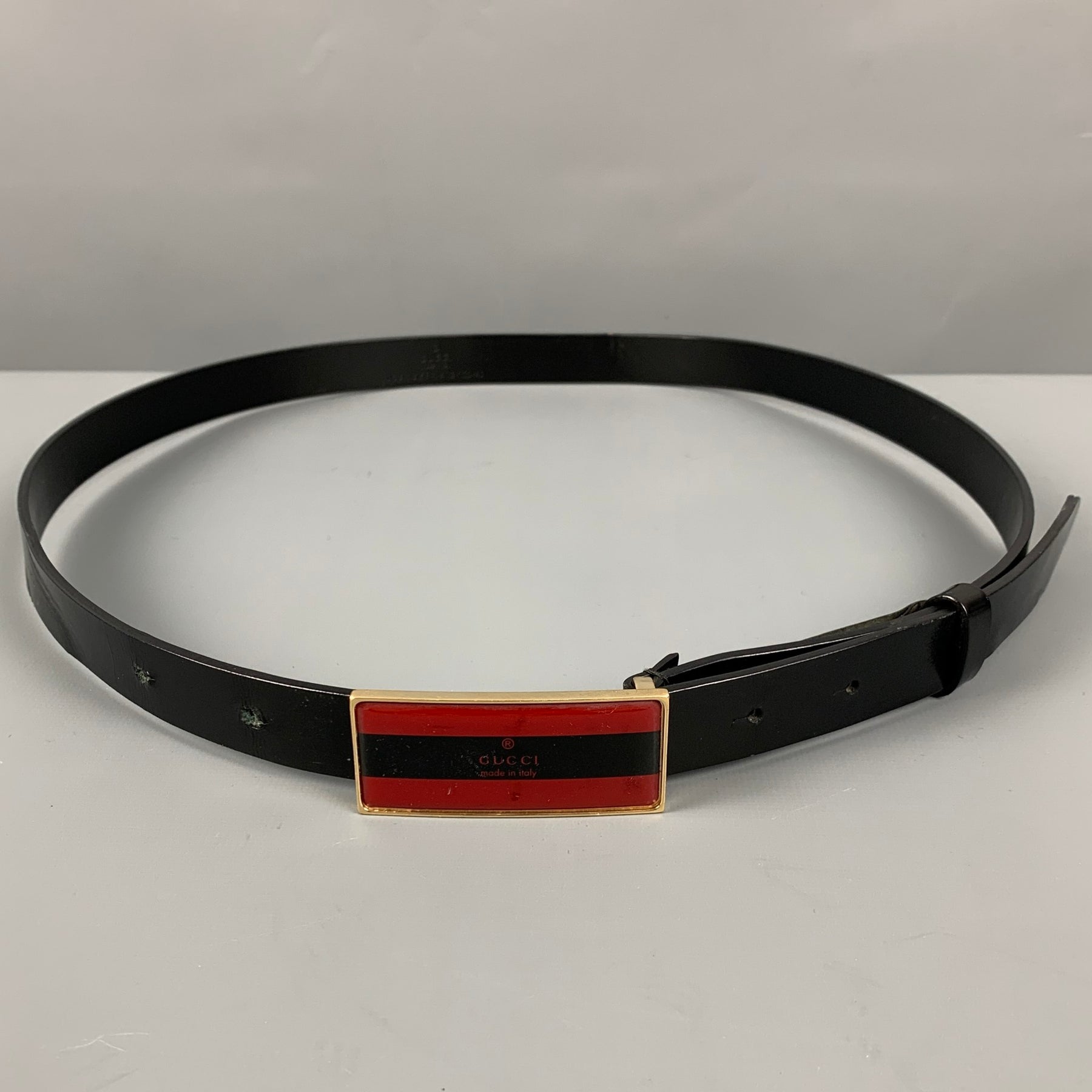 GUCCI belt in a black leather featuring a red and black logo buckle. Made in Italy.