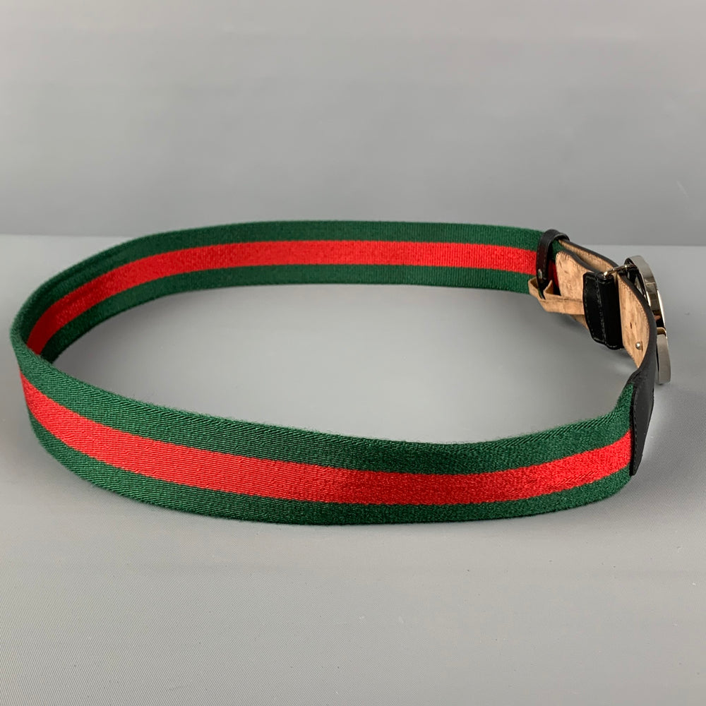 GUCCI Size 40 Green Red Stripe Fabric Leather GG Belt