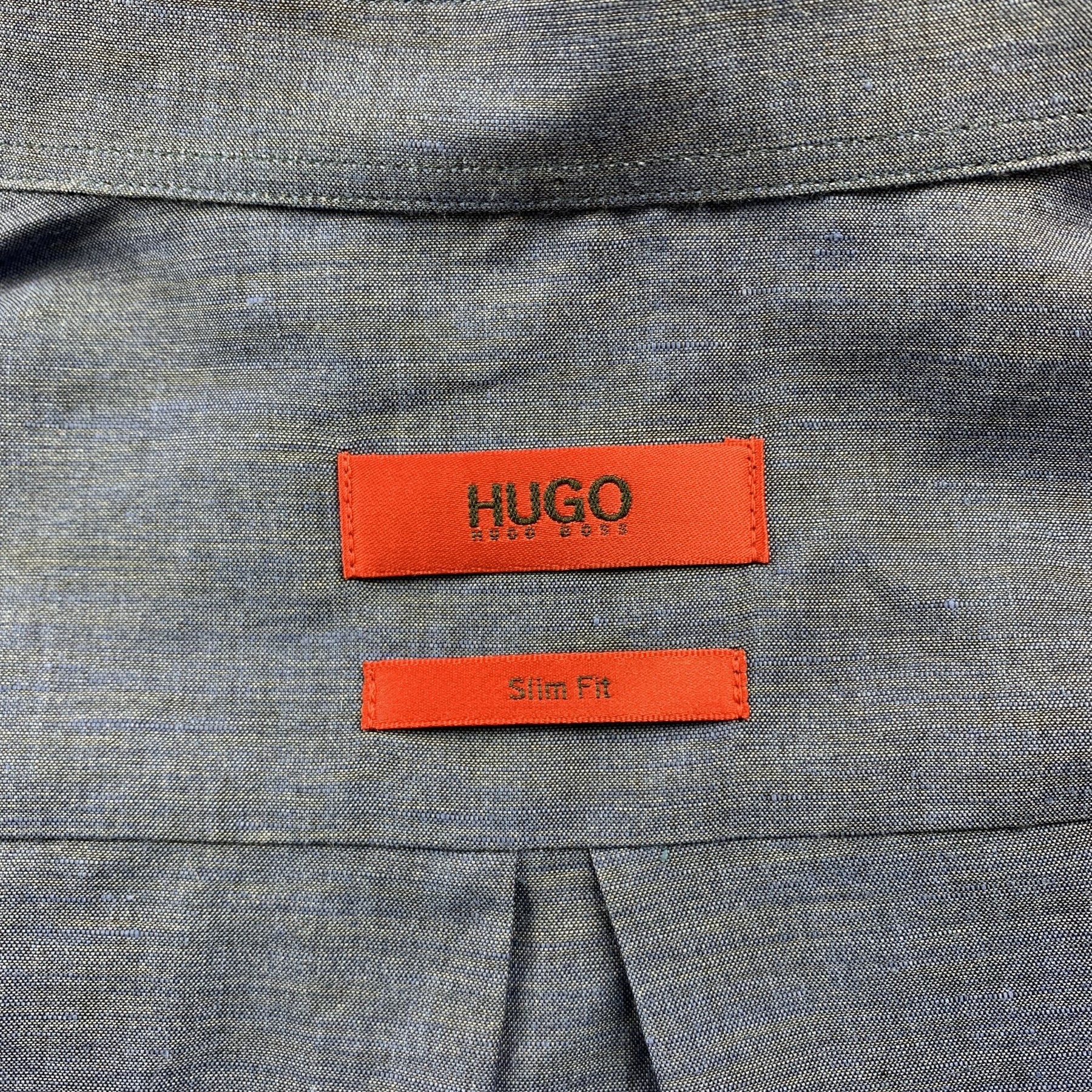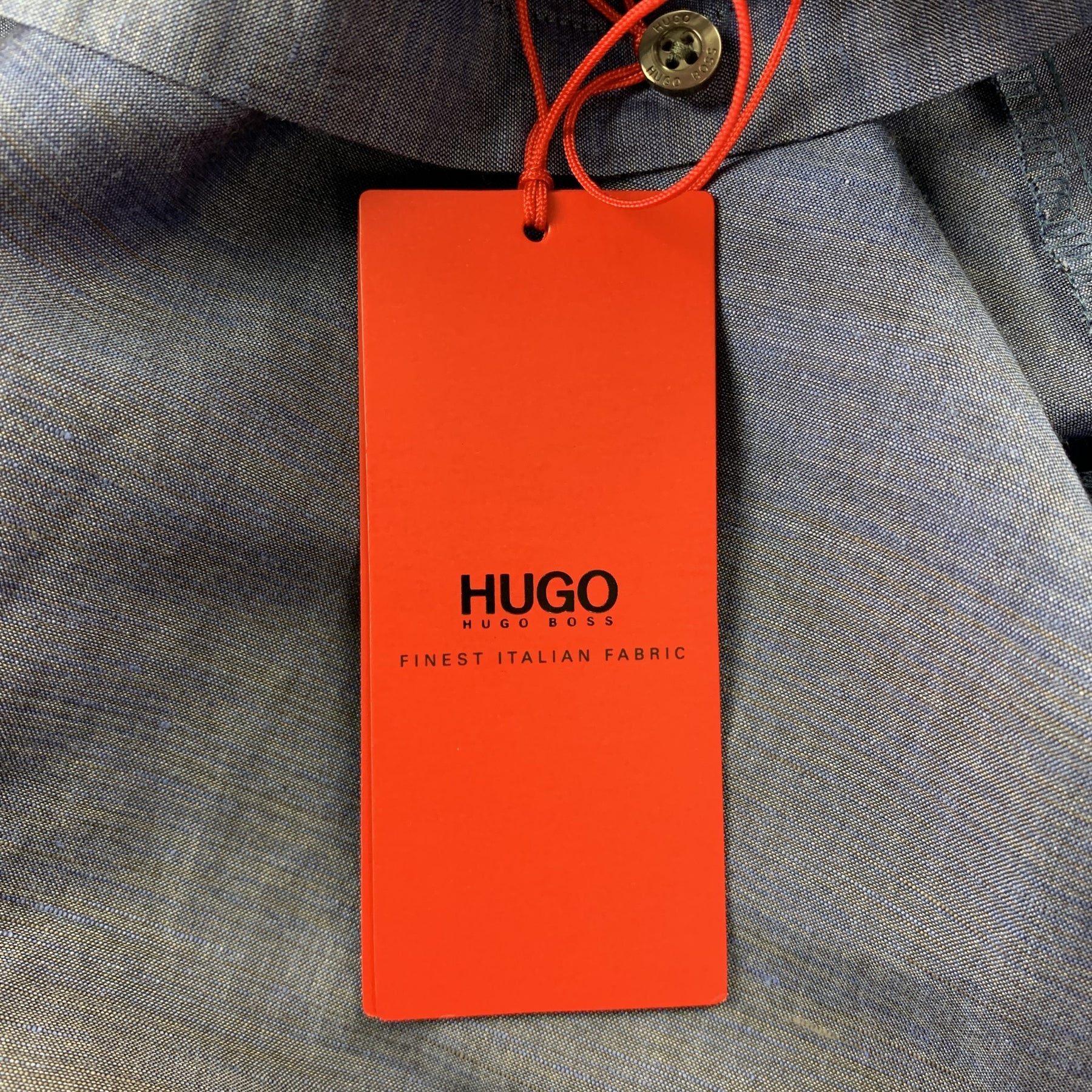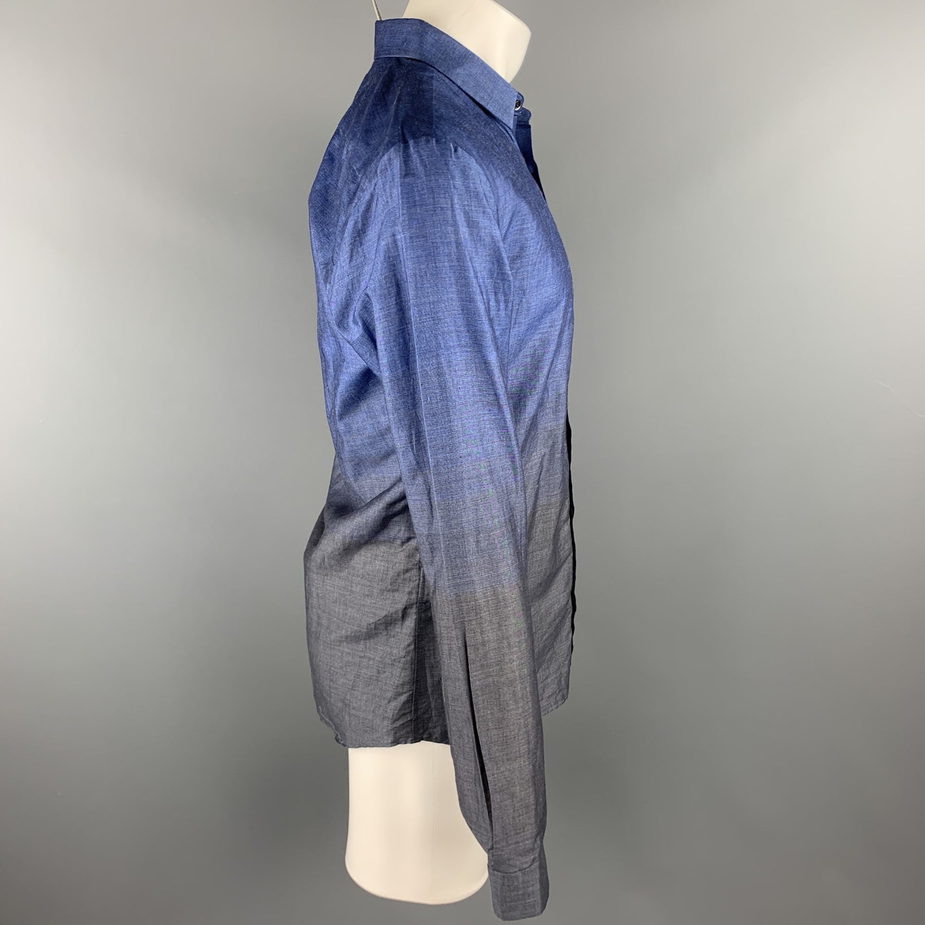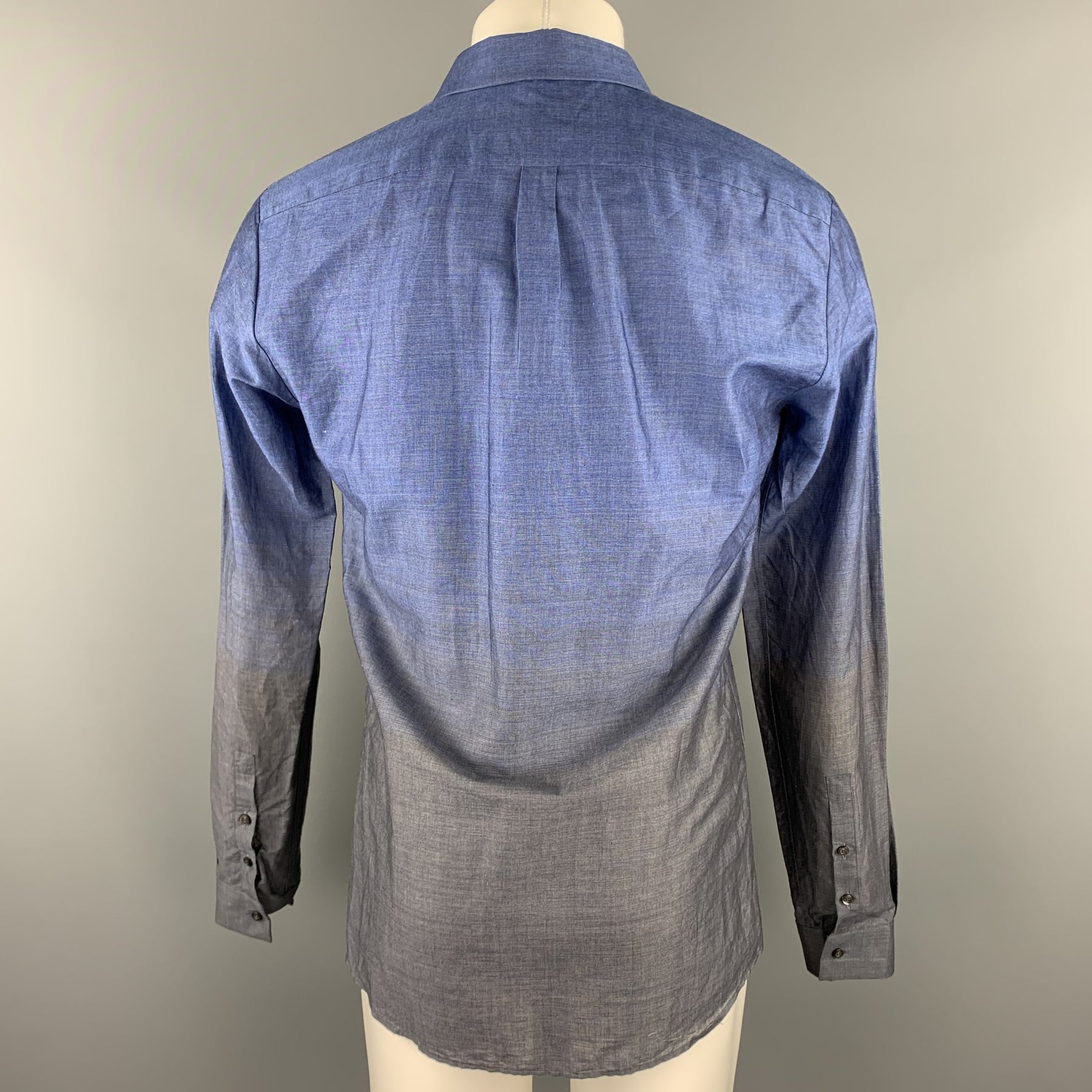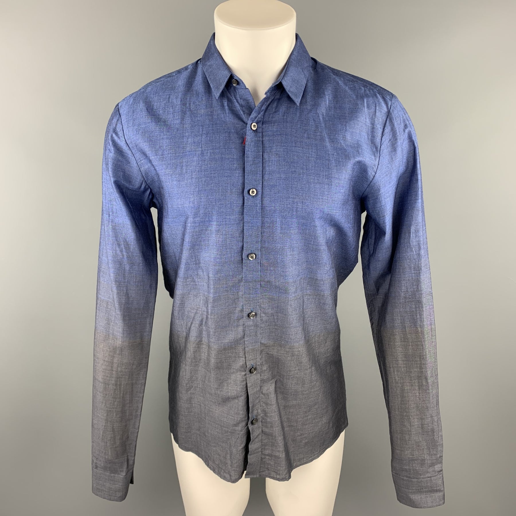 HUGO BOSS Size M Indigo & Charcoal Ombre Cotton Button Up Long Sleeve Shirt