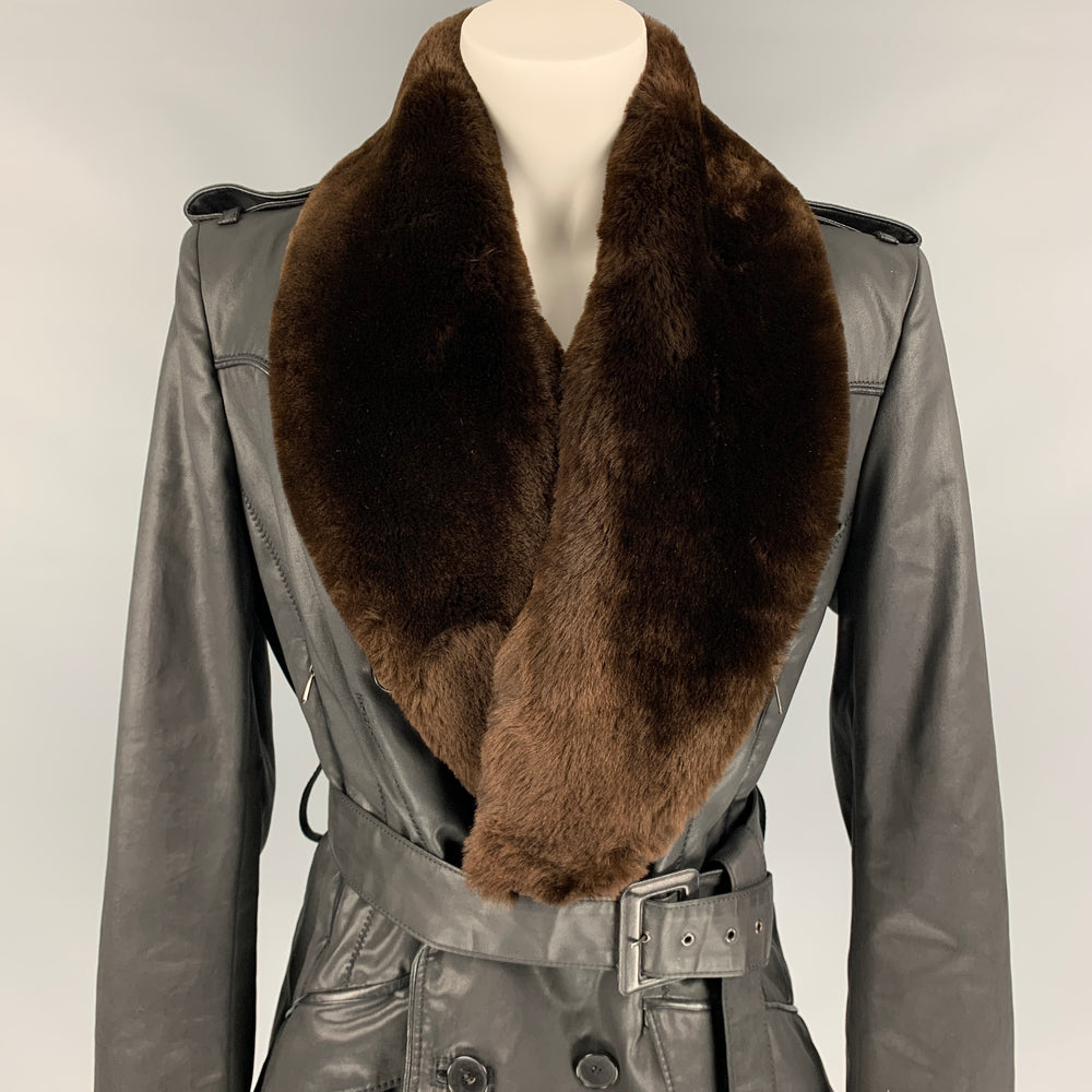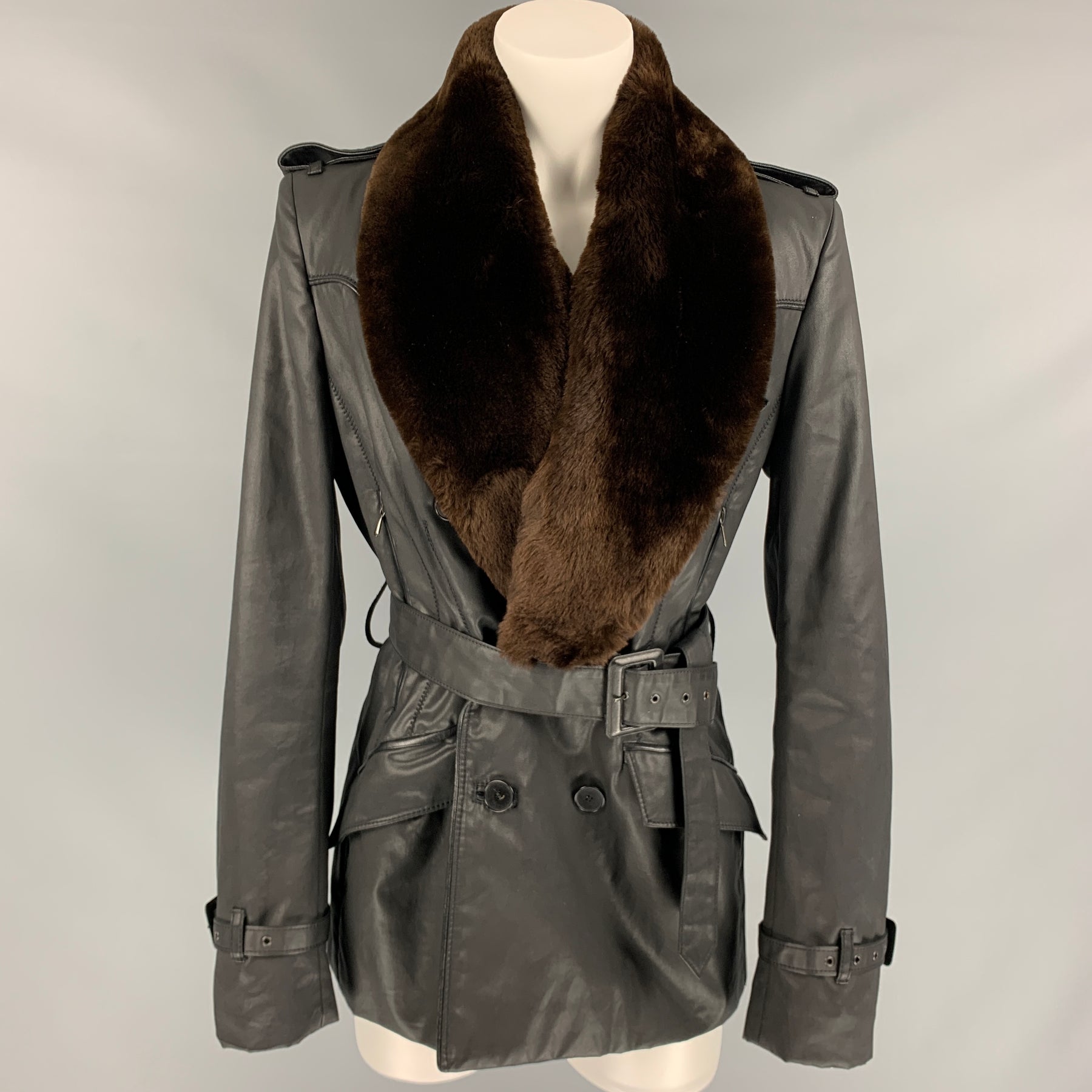 JEAN PAUL GAULTIER jacket comes in a black coated canvas with a full liner featuring a detachable faux fur collar, belted, front pockets, epaulettes, belted sleeves, and a double breasted closure. Made in Italy.