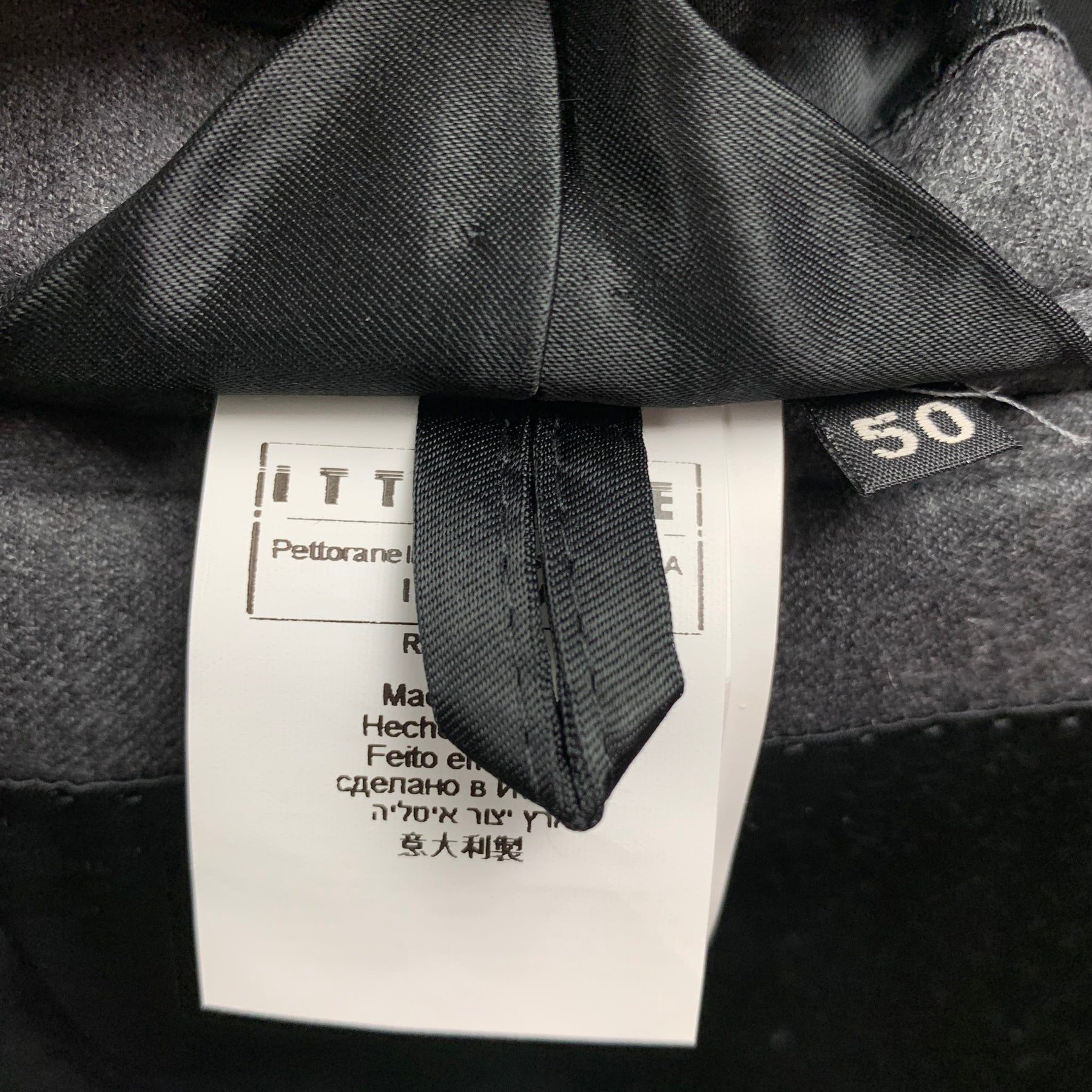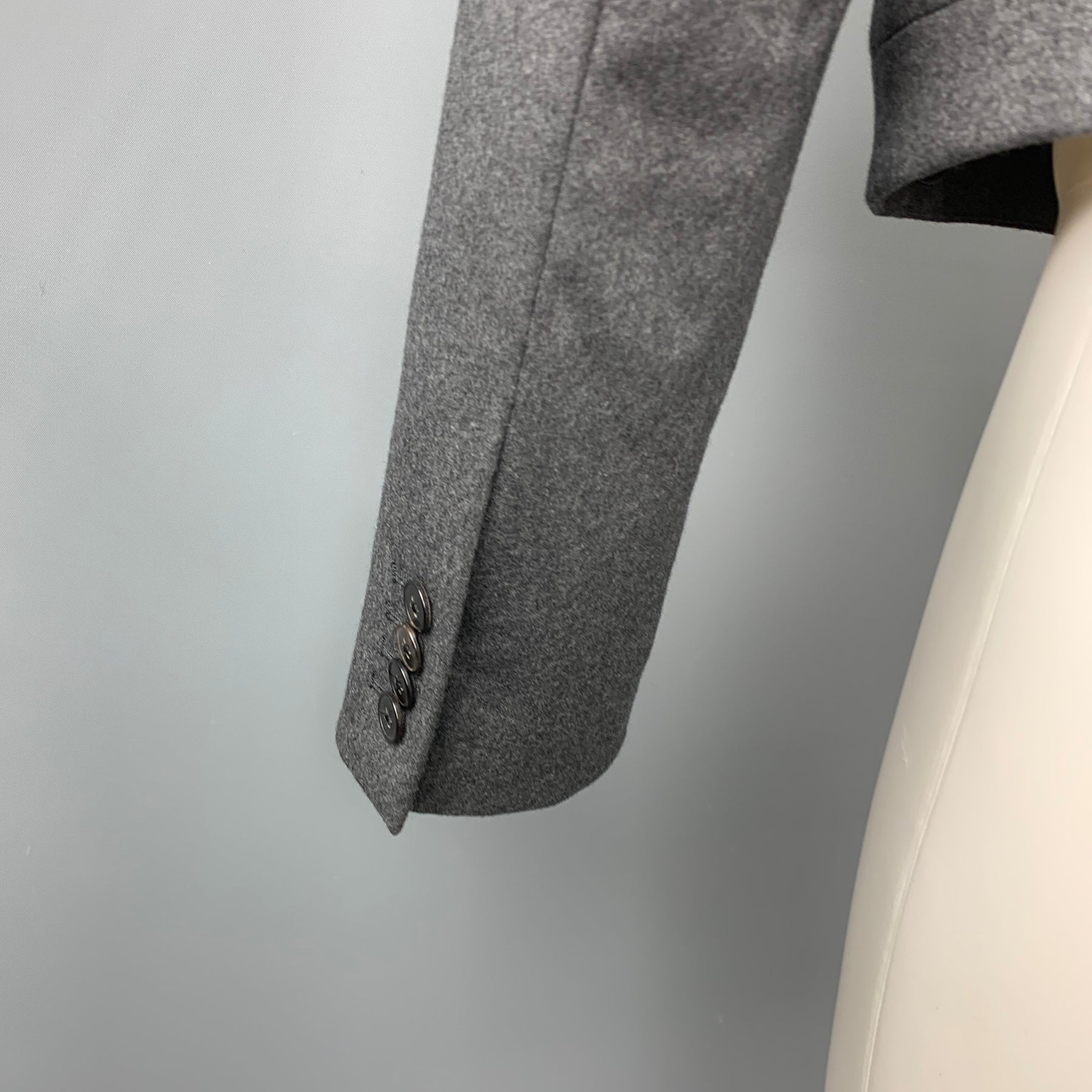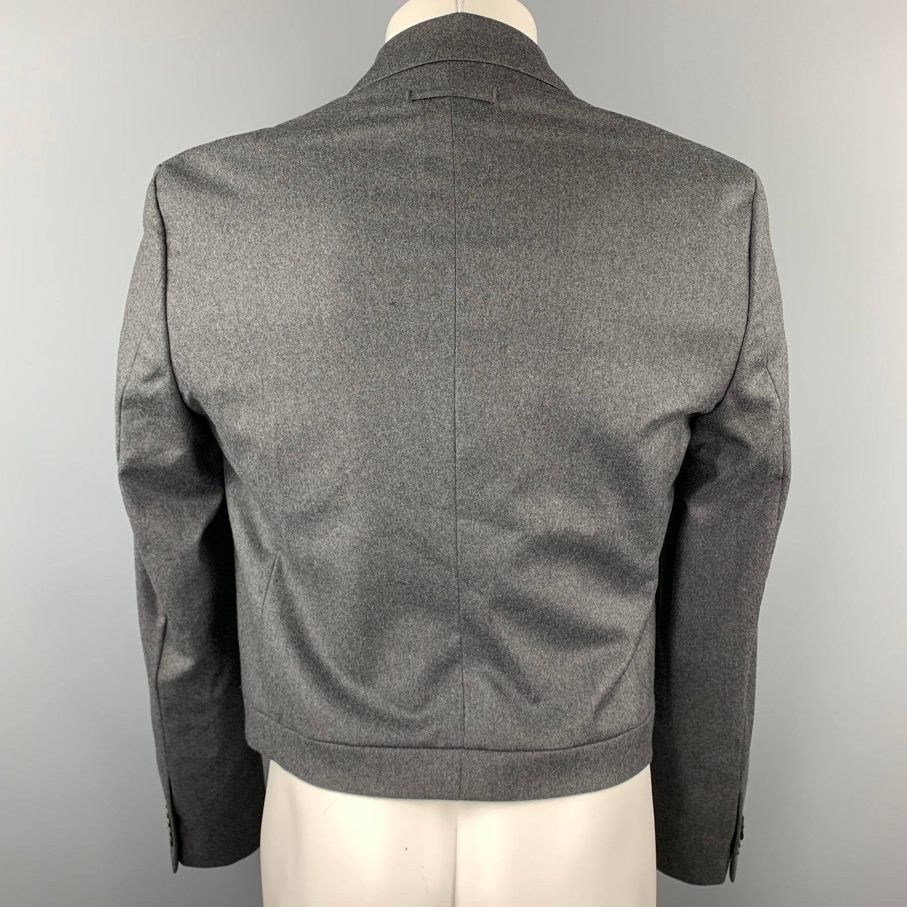 JEAN PAUL GAULTIER jacket comes in a dark gray wool / cashmere featuring a cropped style, peak lapel, and a hook & eye closure. Made in Italy.