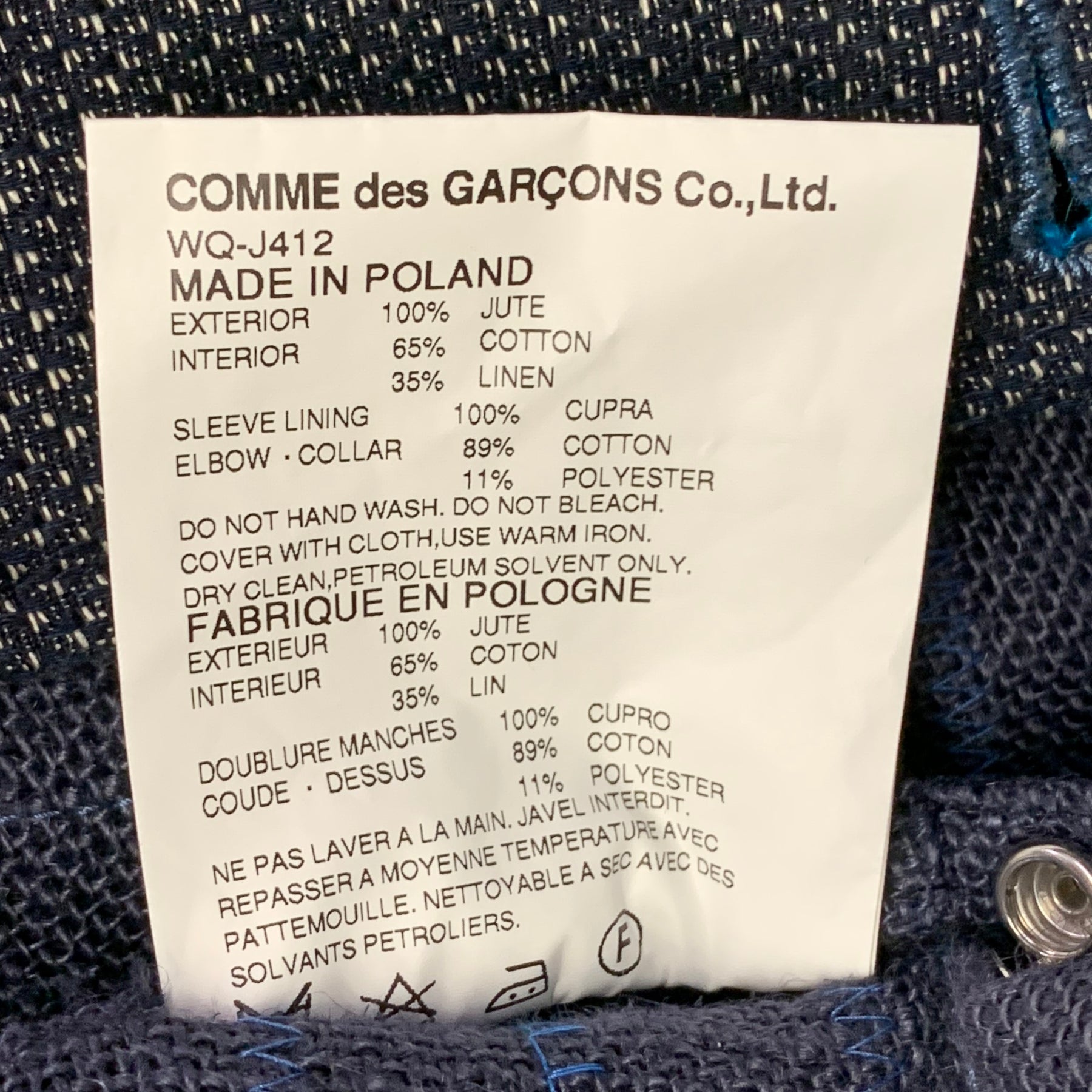 JUNYA WATANABE Size XL Navy Blue Embroidery Jute Worker Jacket