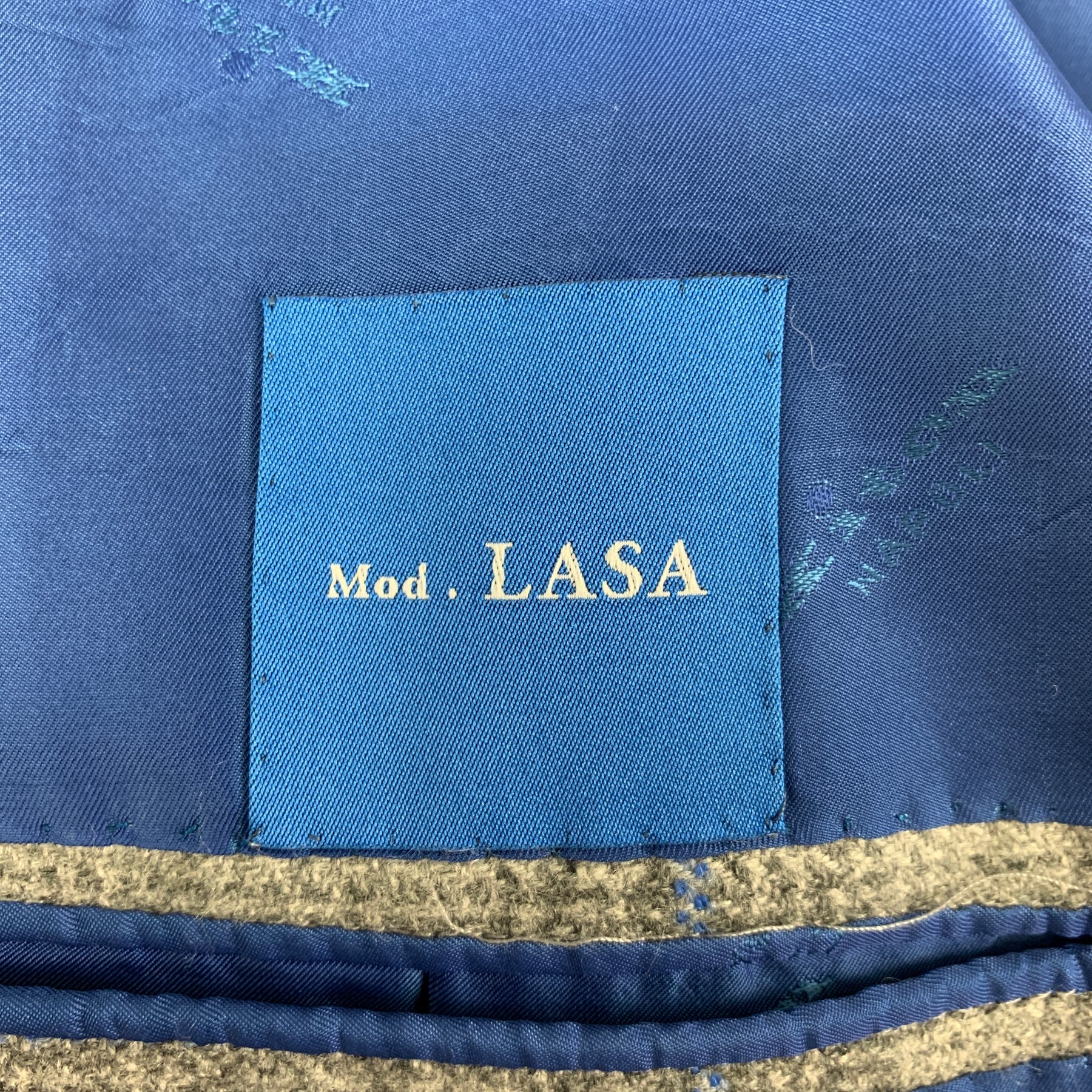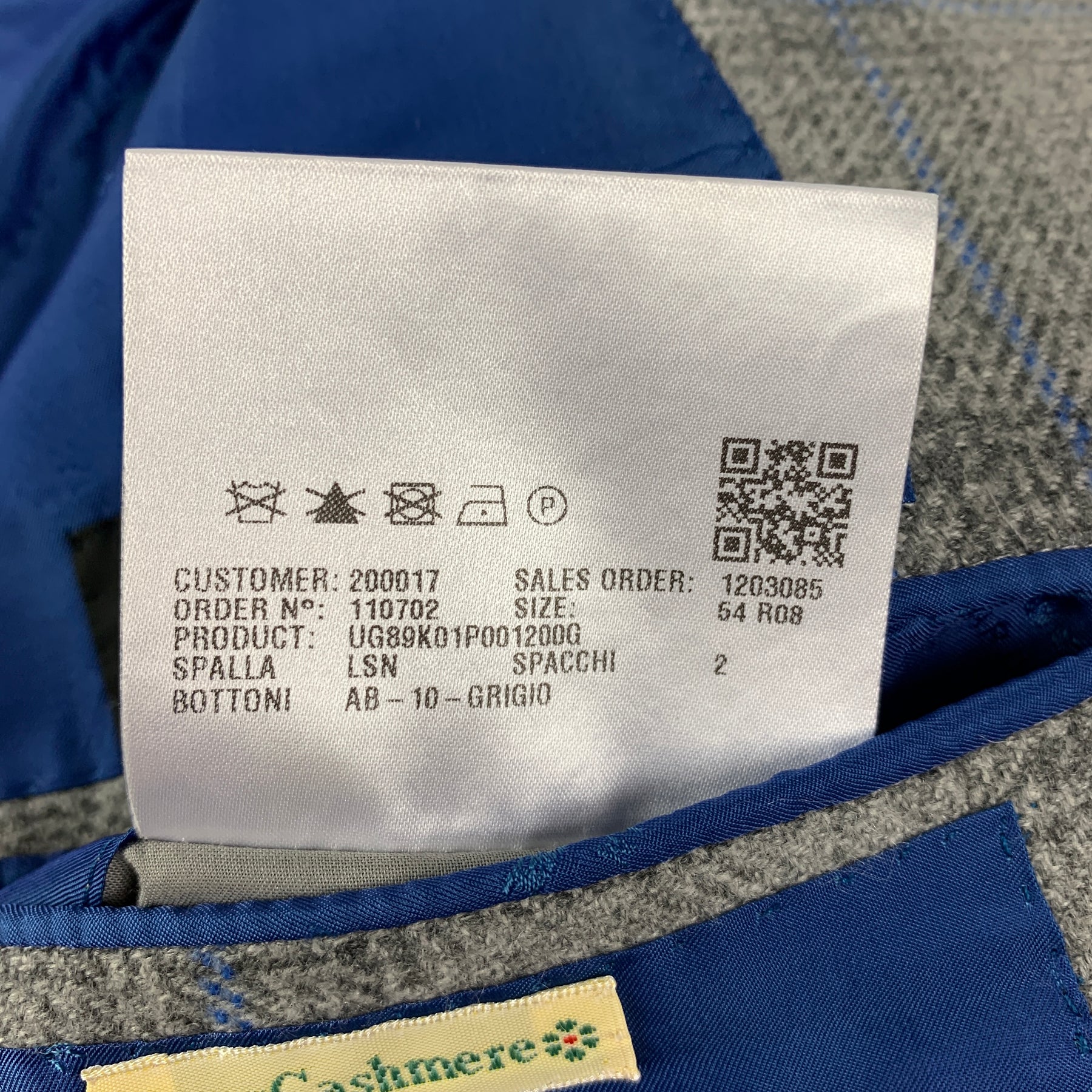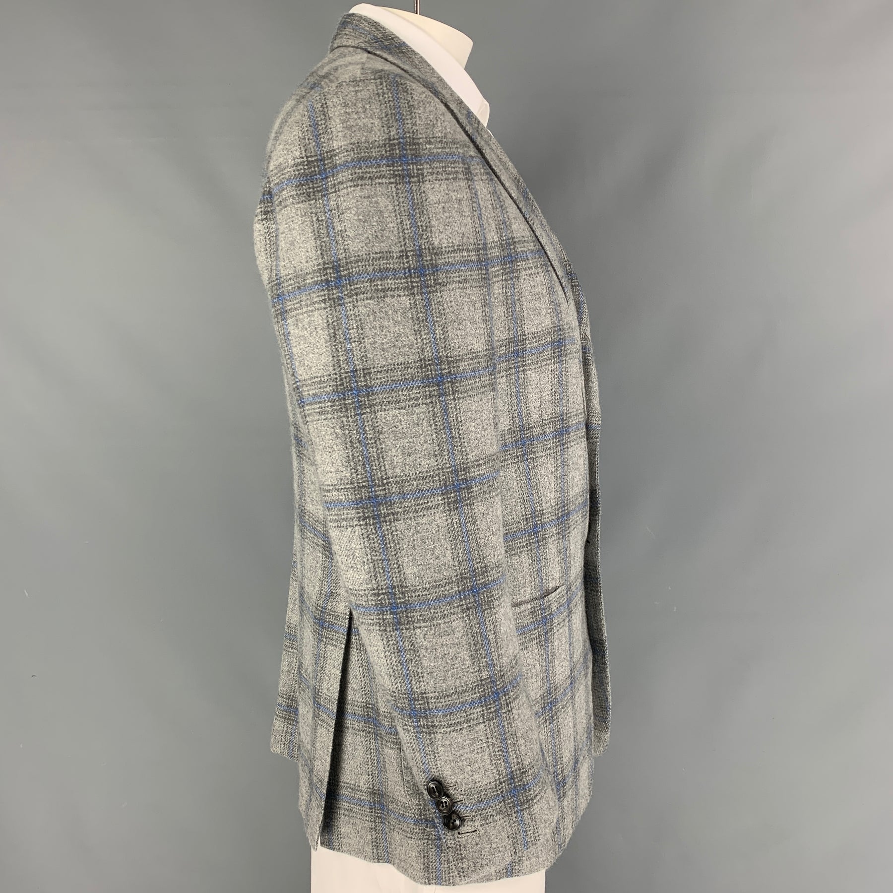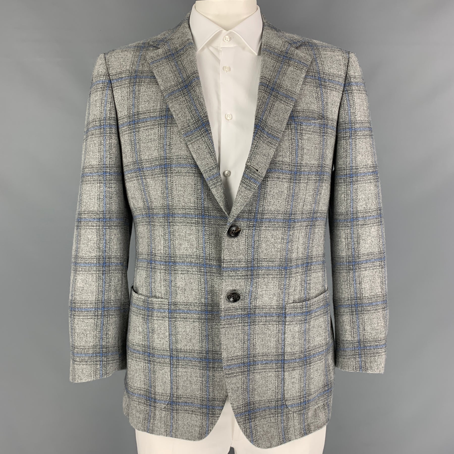 KITON Size 44 Grey Blue Plaid Cashmere Notch Lapel Sport Coat