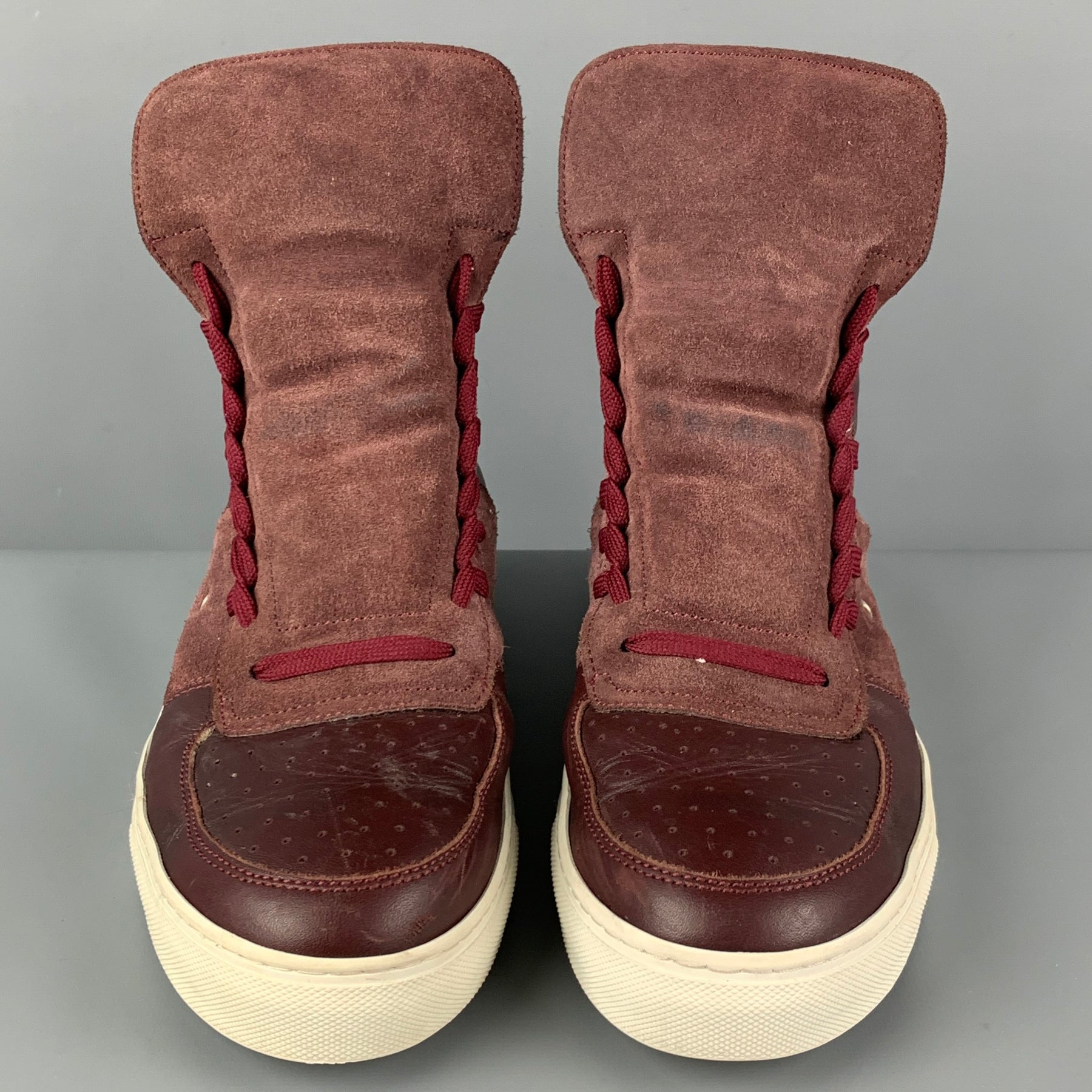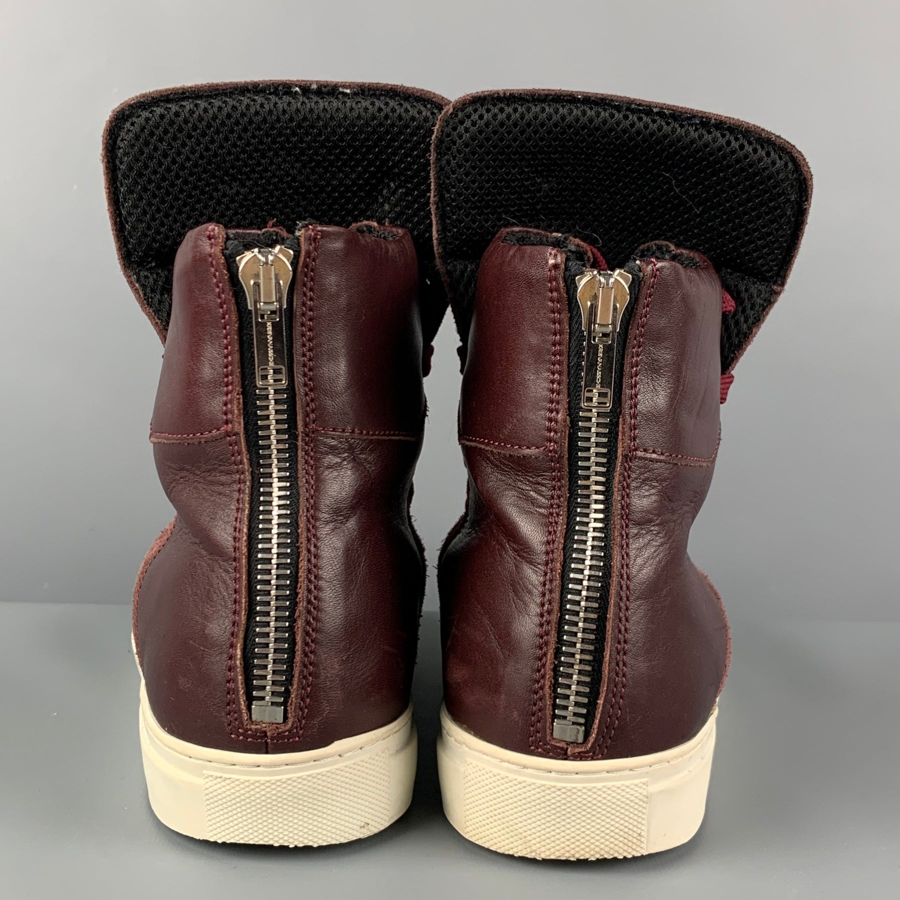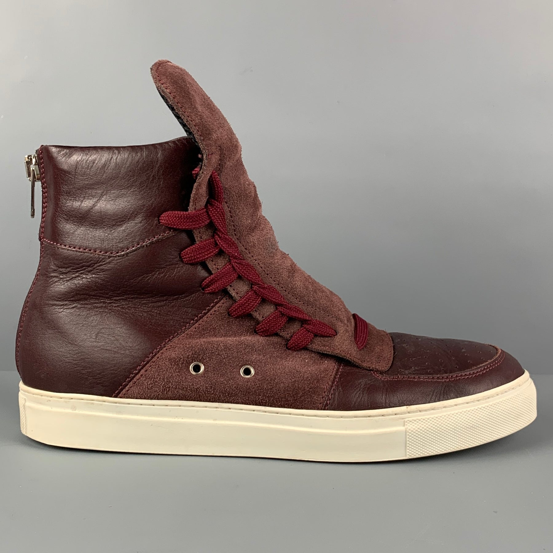 KRIS VAN ASSCHE Size 9 Burgundy Mixed Fabrics Leather High Top Sneakers