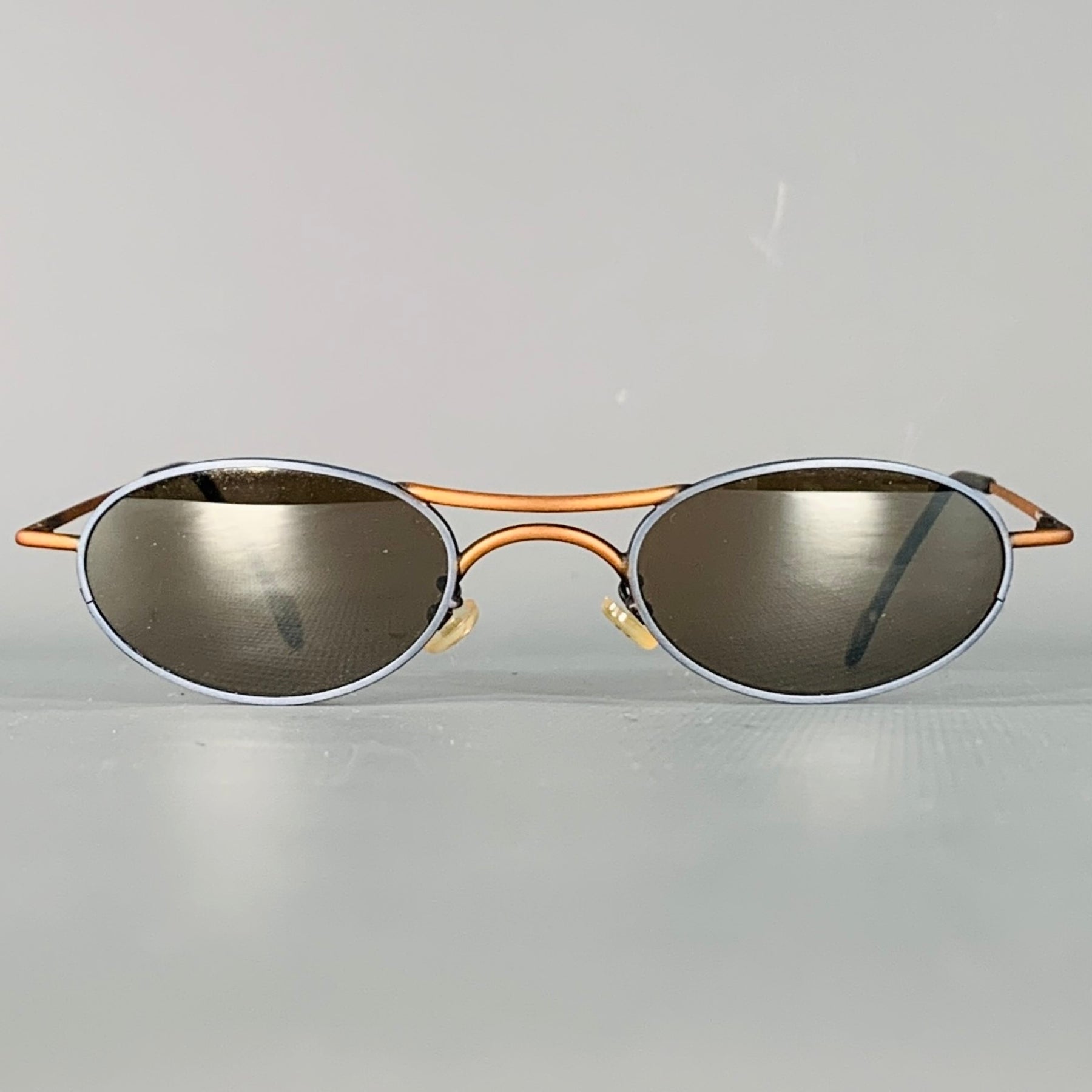 L.A.EYEWORKS "Bender" sunglasses in an orange and gunmetal tone metal featuring black acetate temple arms and rounded aviator shape. Made in Italy.