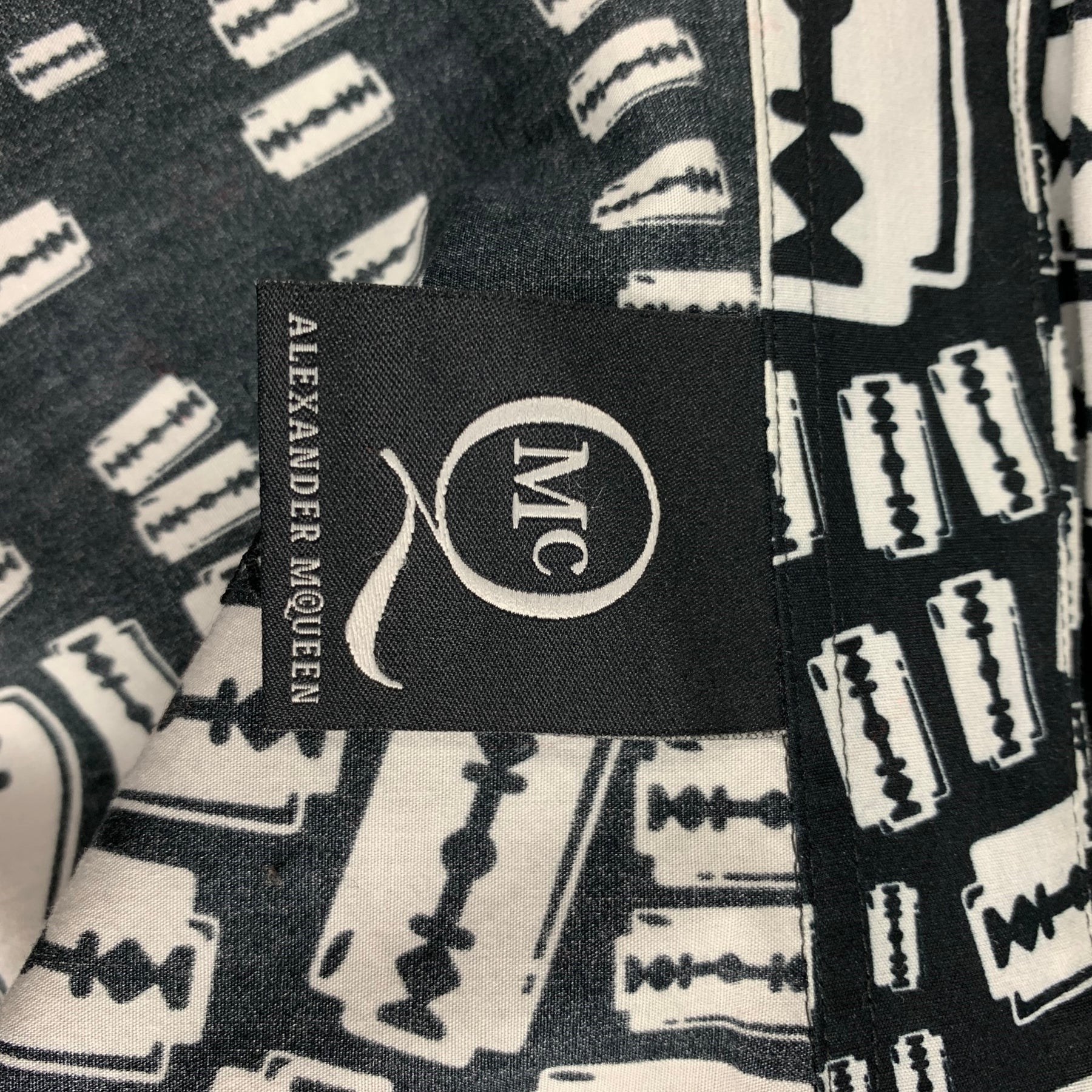MCQ by ALEXANDER McQUEEN long sleeve shirt comes in a black & white razor blade print cotton featuring a spread collar and a button up closure.