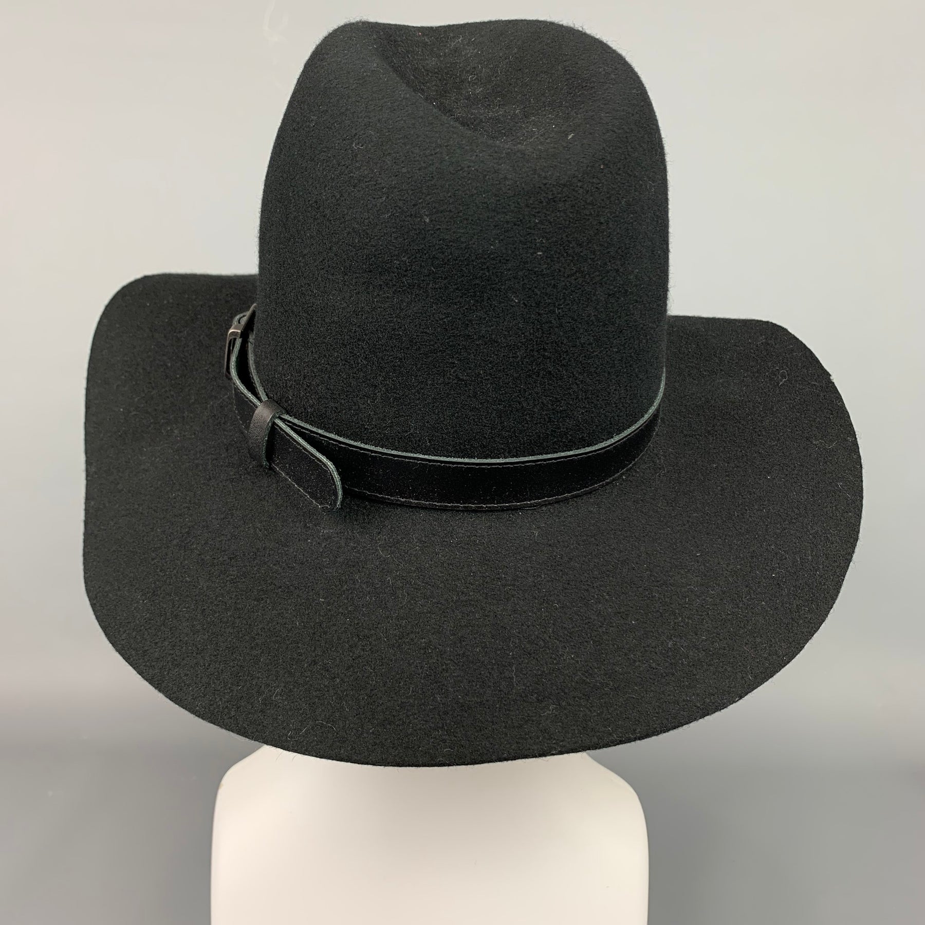 MICHAEL STARS hat comes in a black wool featuring a leather strap detail, adjustable straps, and a fedora style.