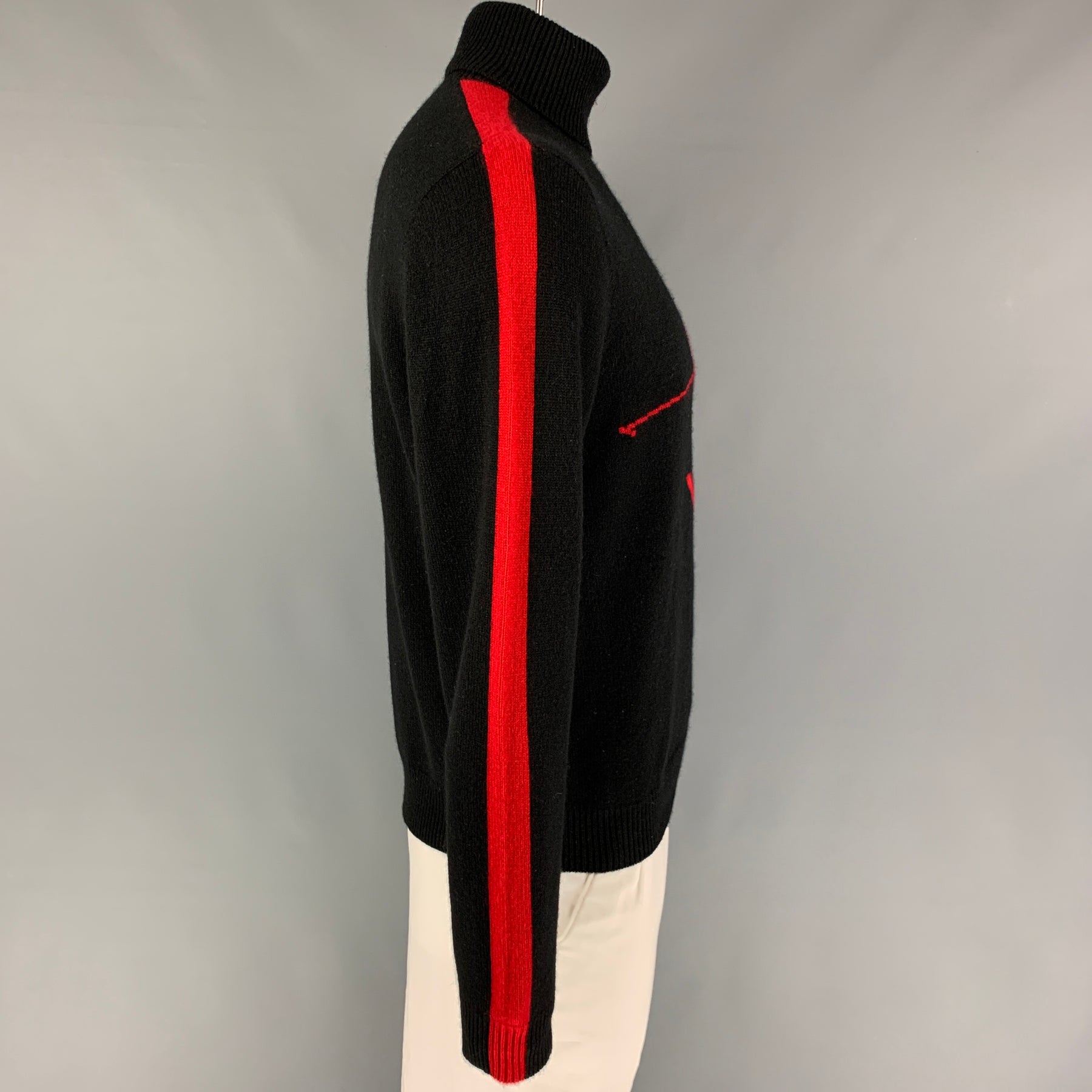 POLO by RALPH LAUREN sweater comes in a black & red knitted cashmere featuring a turtleneck.