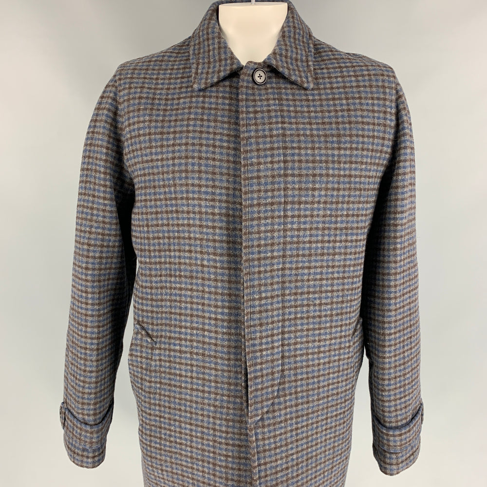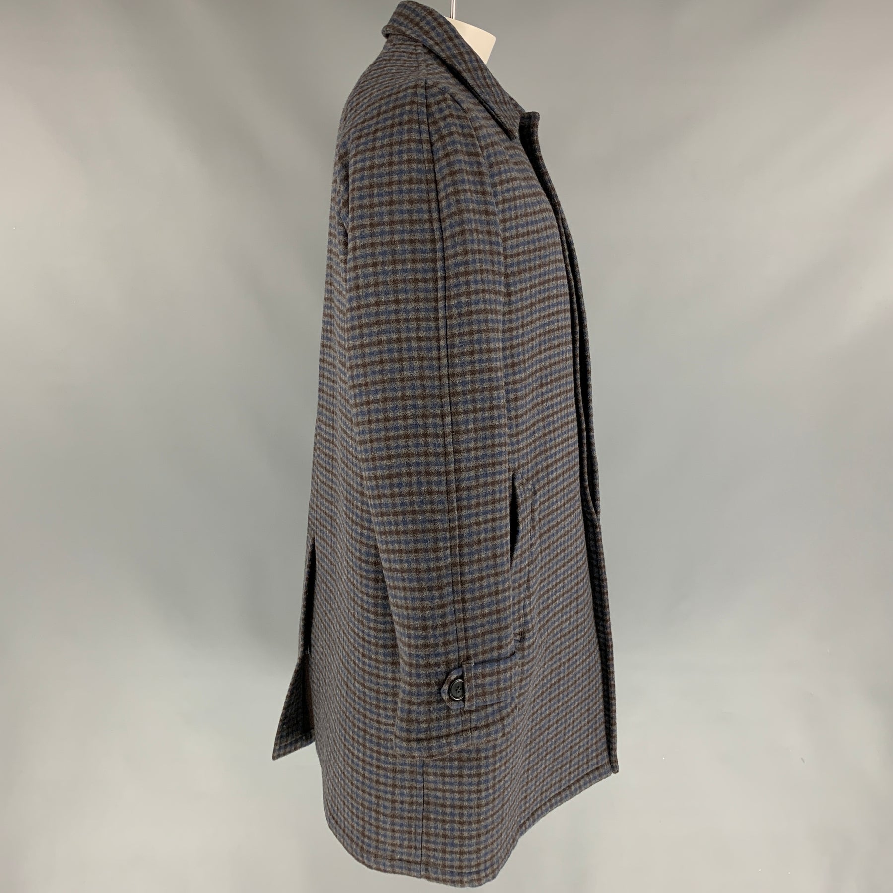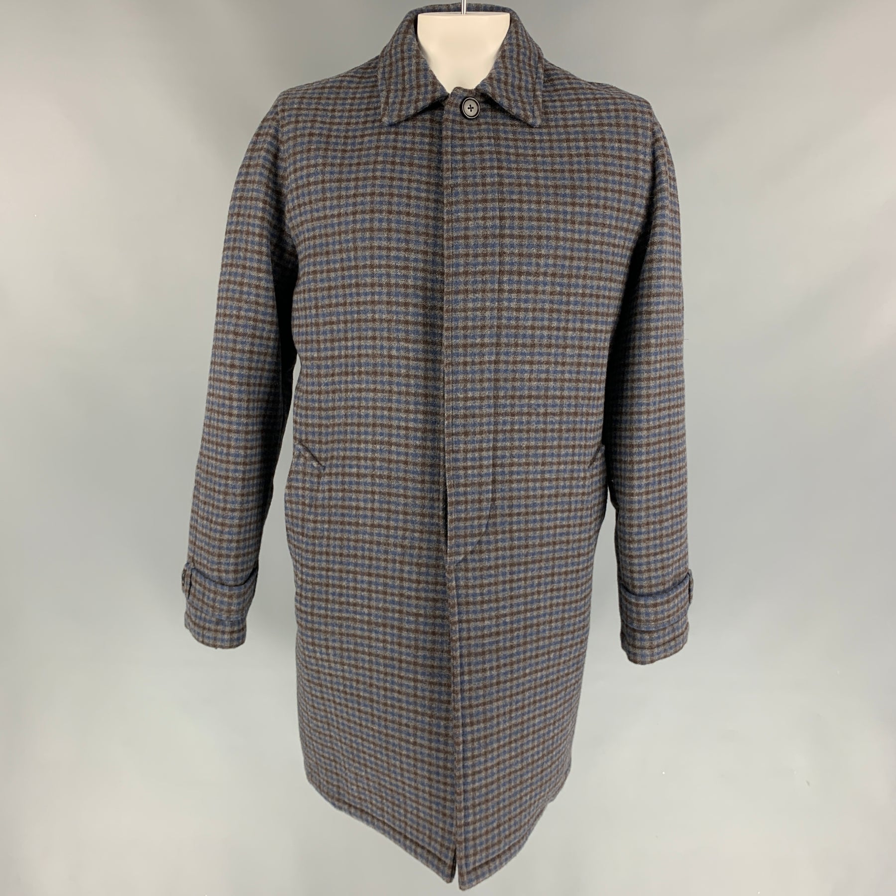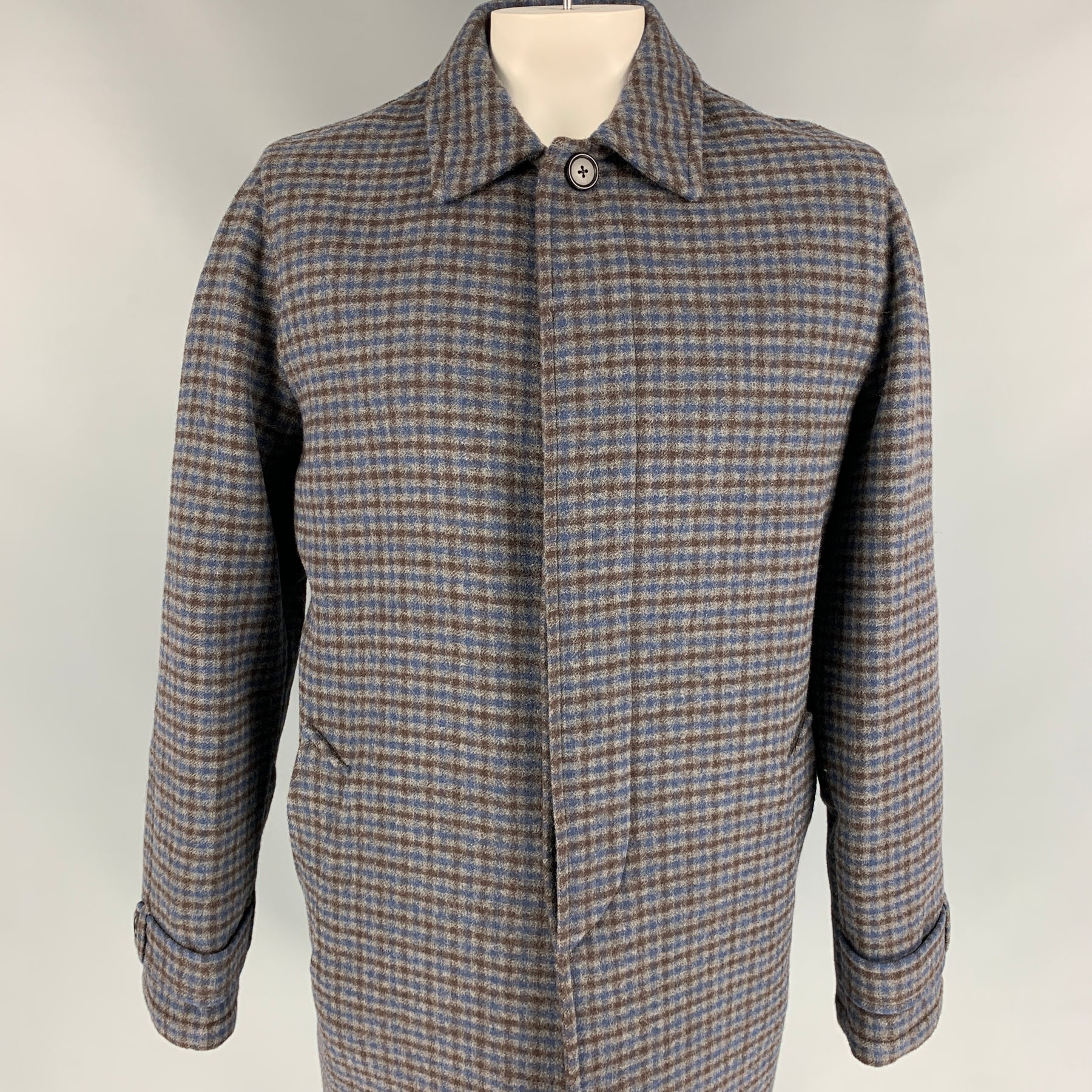 PRADA Size 44 Grey & Blue Checkered Wool Hidden Placket Coat