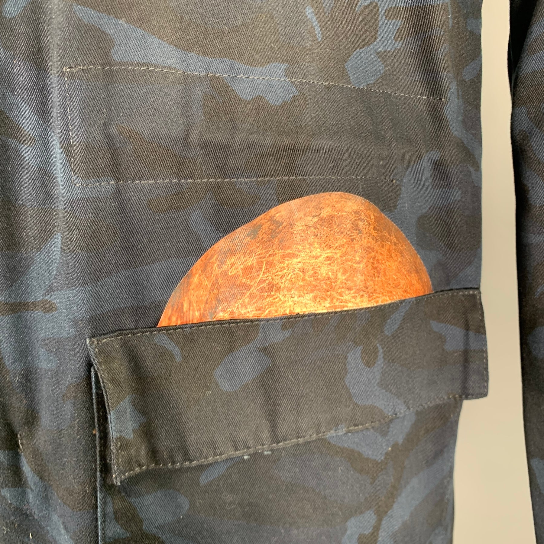RAF SIMONS Size 42 Navy Black Camo Cotton Hooded Coat