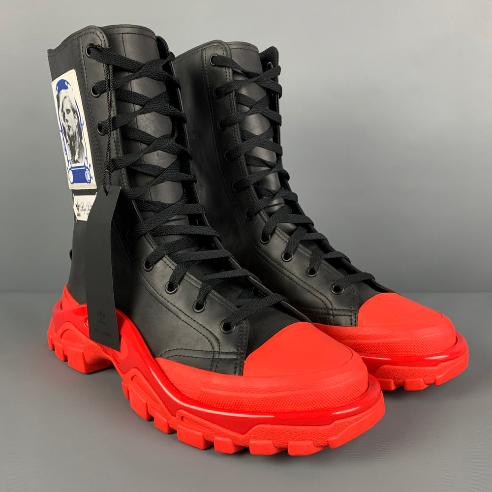 RAF SIMONS x ADIDAS SS 19 Size 9 Black Red Rubber Detroit High Boots