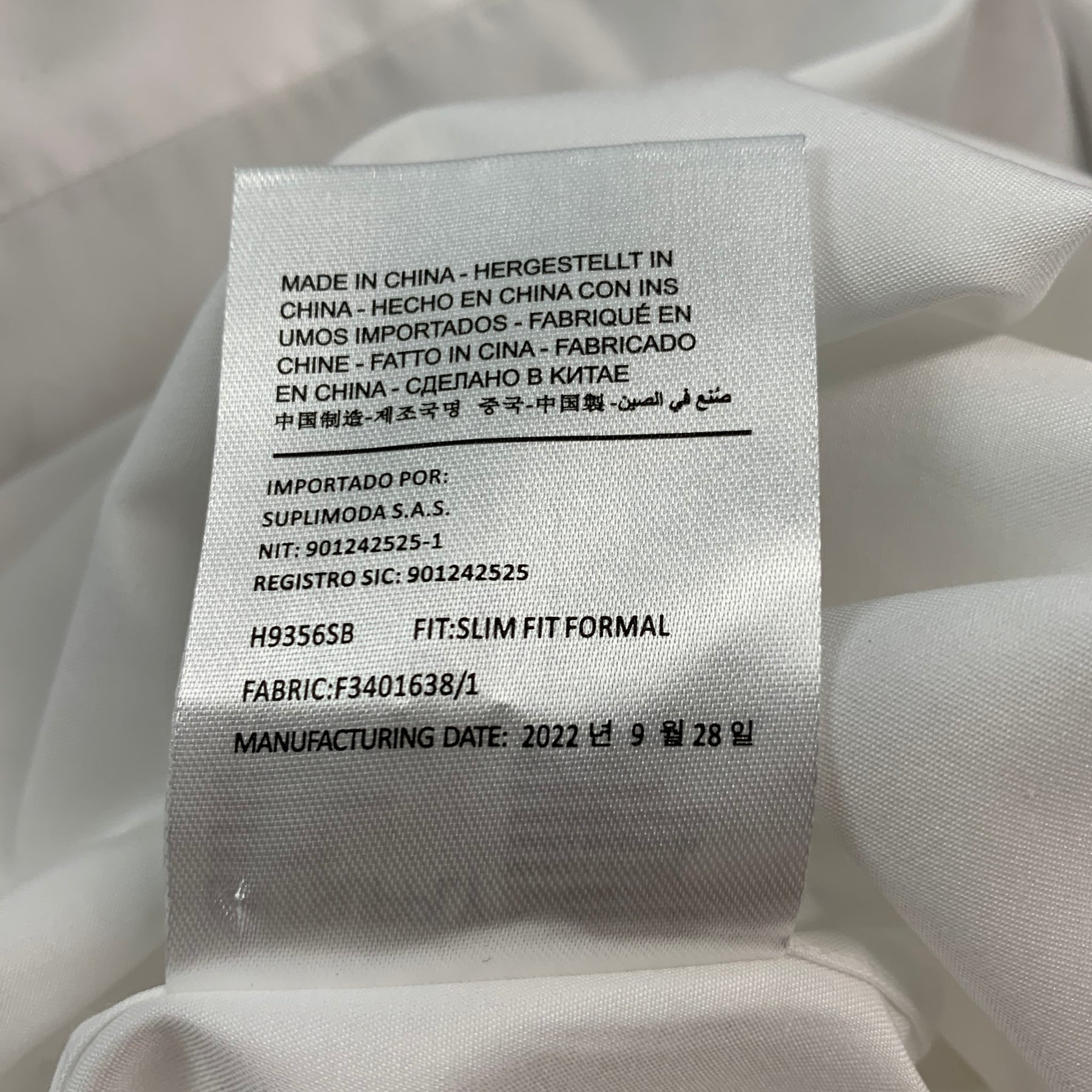 SUITSUPPLY long sleeve shirt in a white Egyptian cotton featuring a slim fit, spread collar, and button closure.
