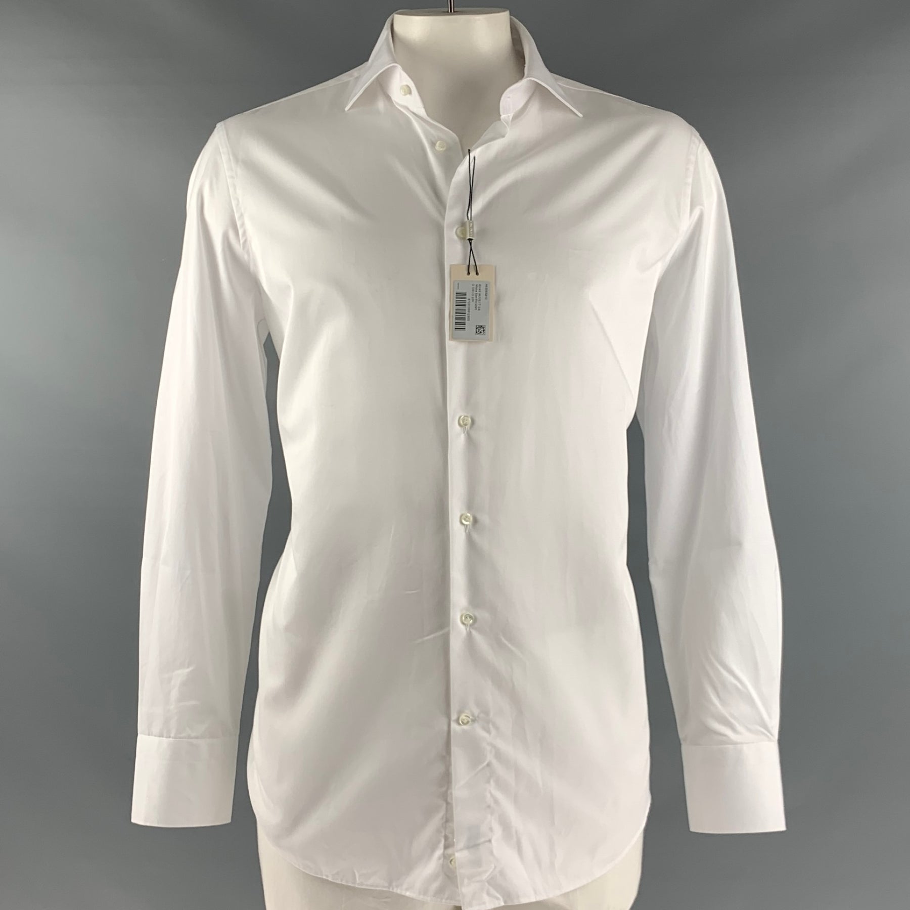 SUITSUPPLY Size XL White Solid Cotton Button Up Long Sleeve Shirt