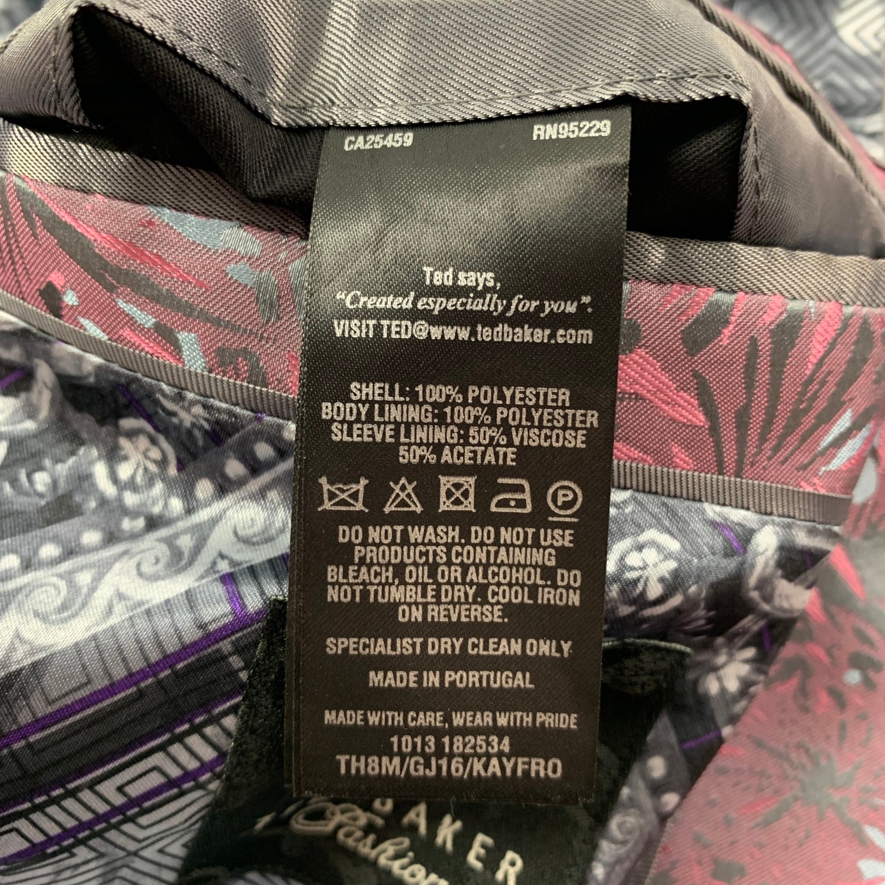 TED BAKER sport coat comes in a pink & steel blue jacquard polyester with a full liner featuring a notch lapel, flap pockets, single back vent, and a single button closure. Made in Portugal.