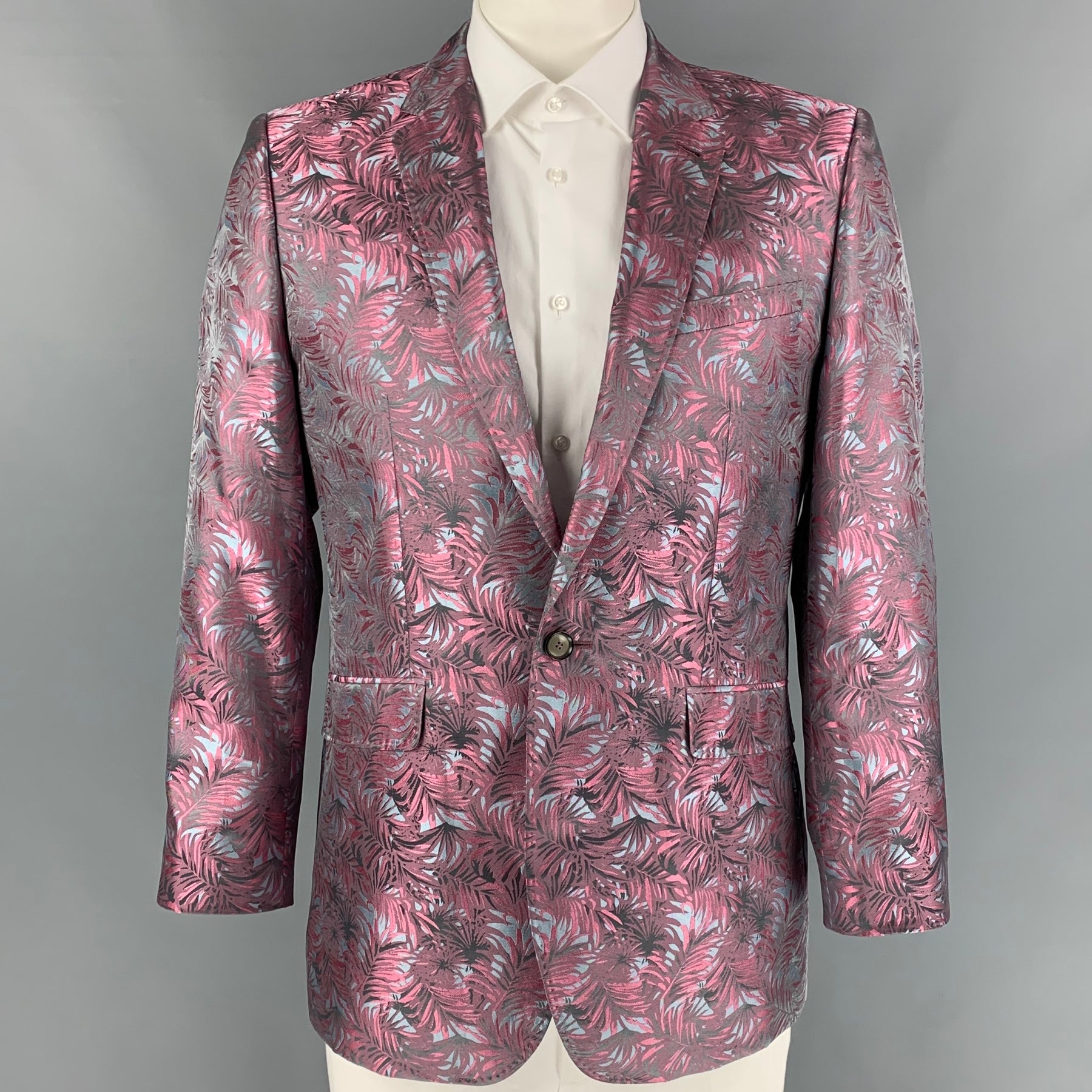 TED BAKER Size 42 Pink Steel Blue Jacquard Polyester Sport Coat