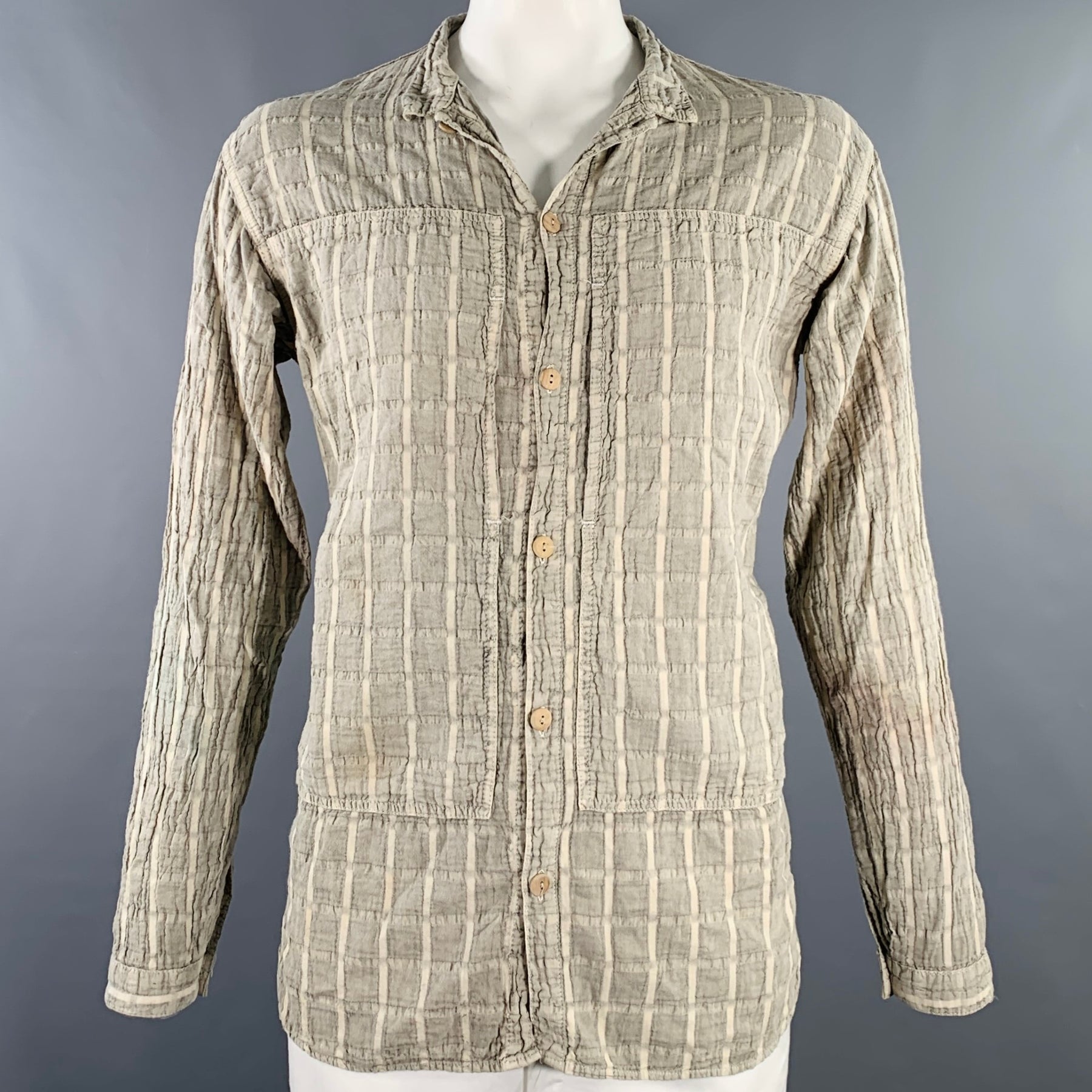 TENDER CO. Size L Grey Window Pane Cotton Patch Pockets Long Sleeve Shirt