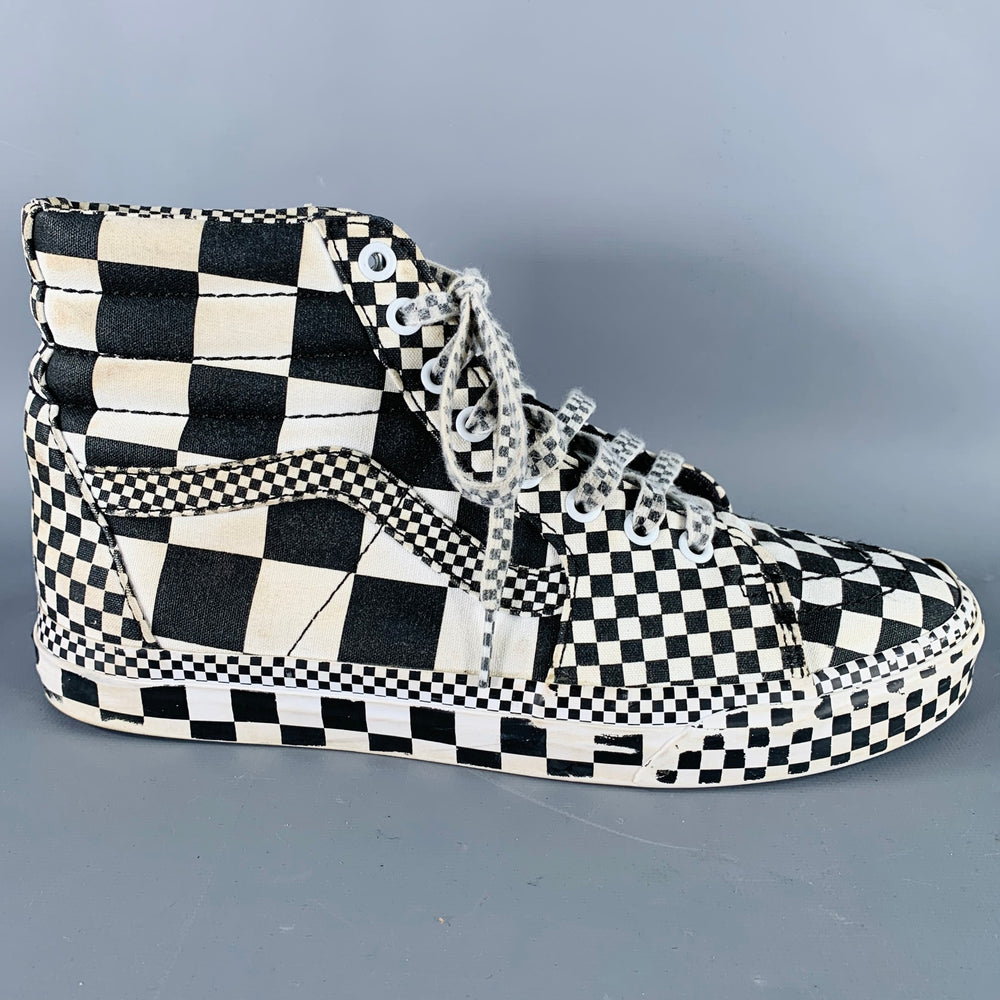 VANS Size 8.5 All Over Checkerboard Black White Checkered Canvas High Top Sneakers